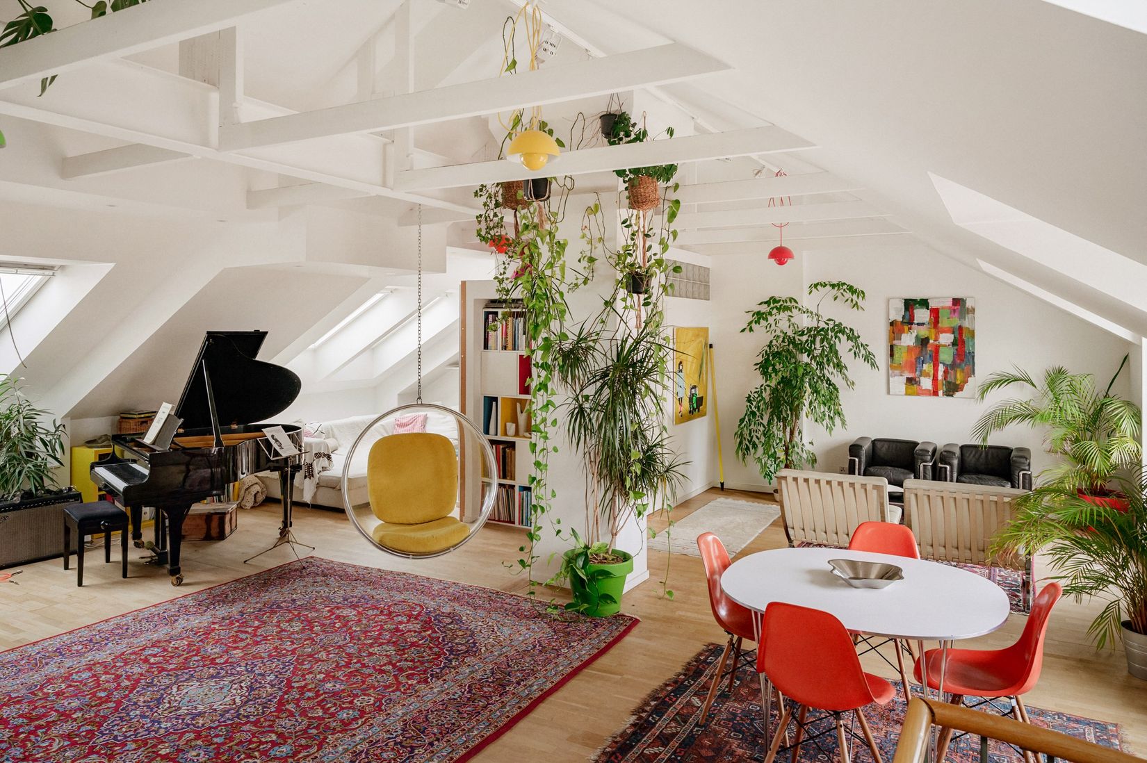 Via den eleganta spiraltrappan i hallen når ni övervåningen, en våning med härlig vindskaraktär och verklig wow-känsla. Detta plan används idag som ett enda stort rum, men kan lika lätt delas av och skräddarsys efter era önskemål. Här finns flera charmiga franska balkonger som släpper in rikligt med ljus samt ytterligare ett badrum, vilket gör våningen både praktisk och flexibel.