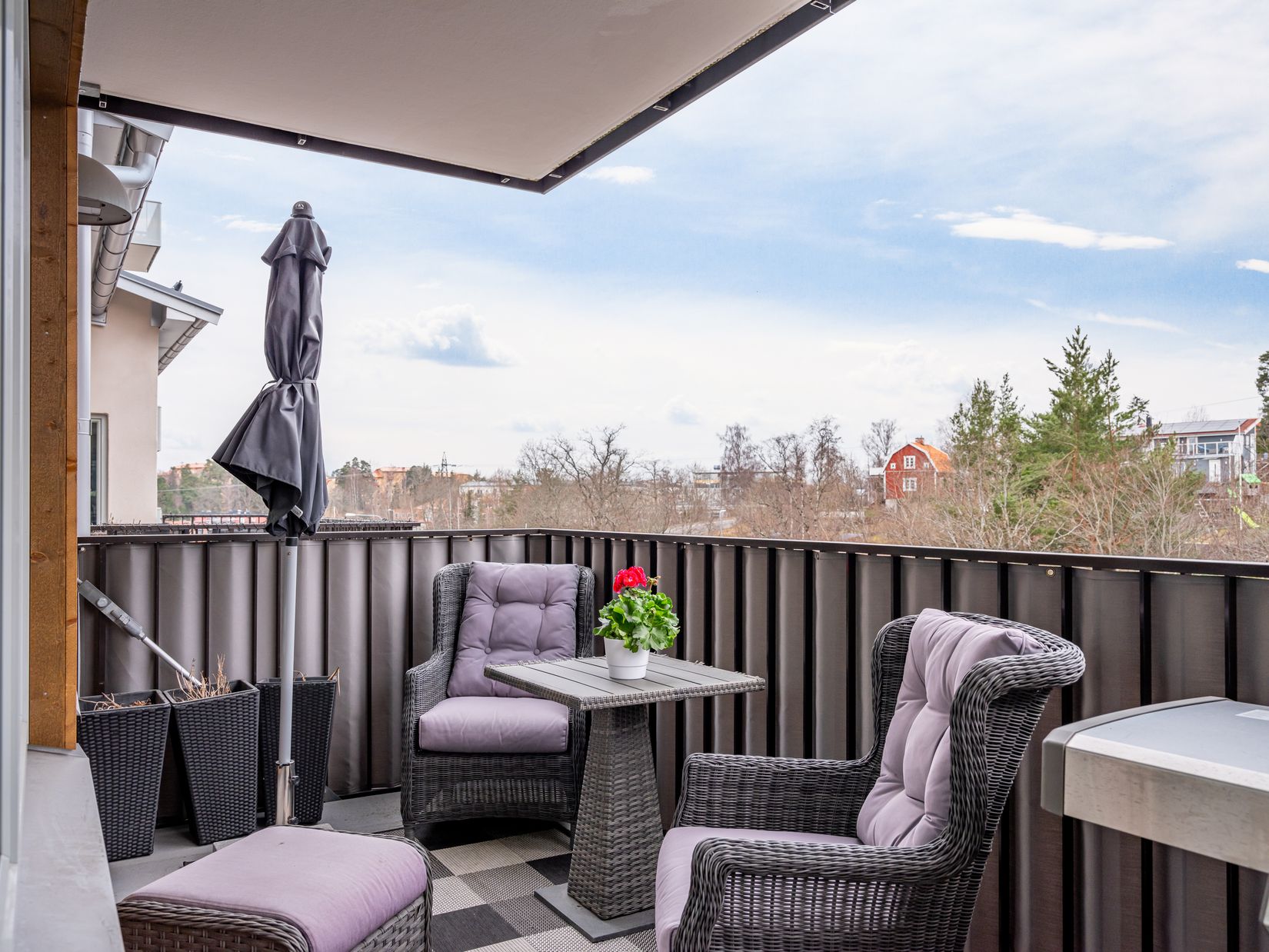 När du behöver ta dig in till city för arbete eller nöjen har du smidiga kommunikationer. Till busshållplatsen Solängsvägen har du ca 174 meter varifrån du åker till Sollentuna station på mellan ca 10-13 minuter med buss 527 och sedan vidare in till city med pendeltåget som tar ca 17 minuter. När du ska åka hem går bussresan från Sollentuna något snabbare, omkring 6-7 minuter. Från hållplatsen Malla Silfverstolpes väg är det ca 177 m och därifrån kan du åka både mot Mörby centrum, Danderyds sjukhus och Täby förutom Sollentuna och Kista. Med bil tar det omkring 20 minuter in till city beroende på trafik och cirka 20 minuter till Arlanda tack vare närheten till E4:an.