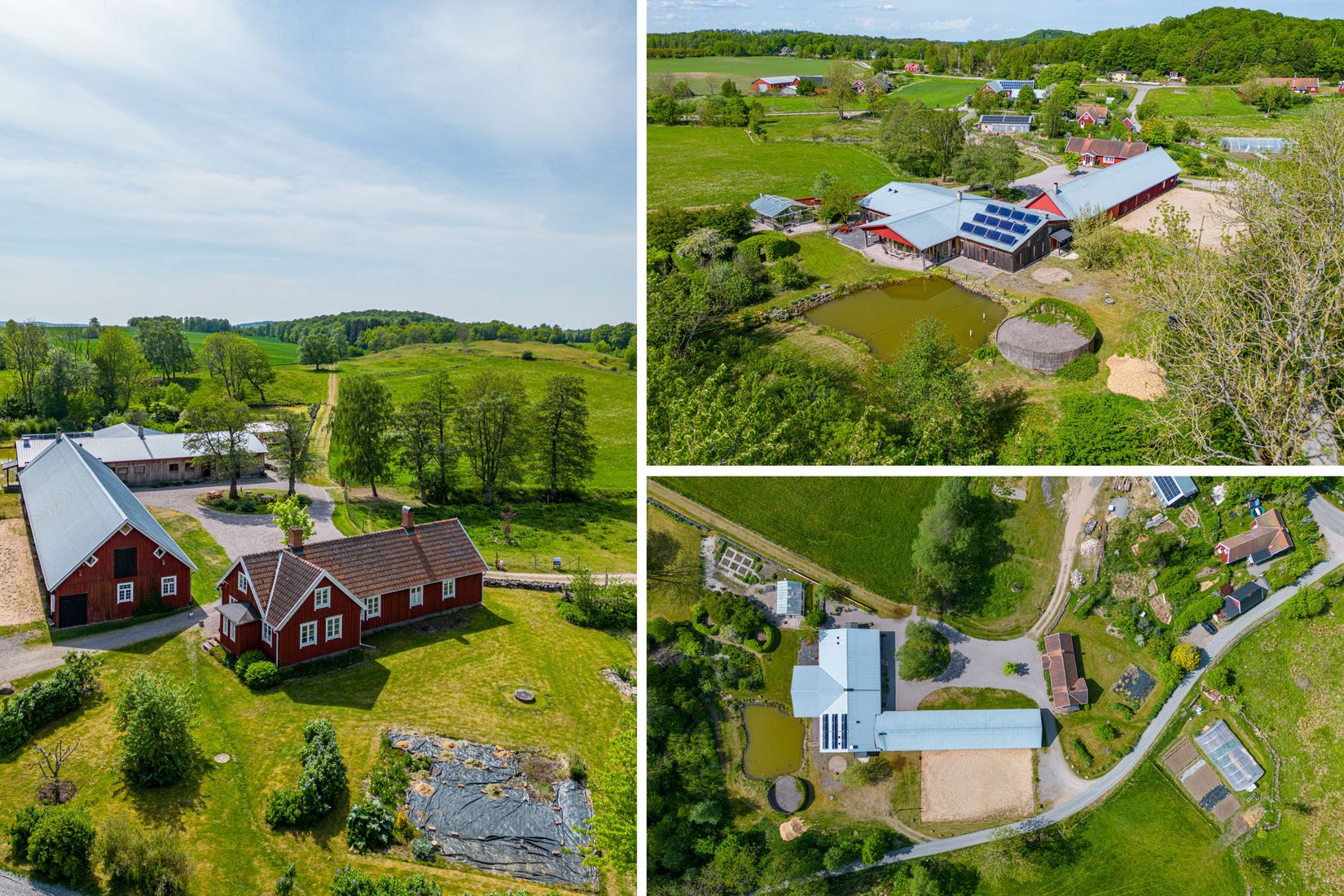 Utöver detta finns en vacker damm, välskötta trädgårdsytor, växthus och odlingsbäddar – perfekt för den som vill leva nära naturen och kanske odla egna grönsaker. Den stora tomten erbjuder dessutom gott om plats för framtida utveckling, oavsett om du drömmer om fler djur, större anläggning eller bara mer utrymme för familjen att växa.