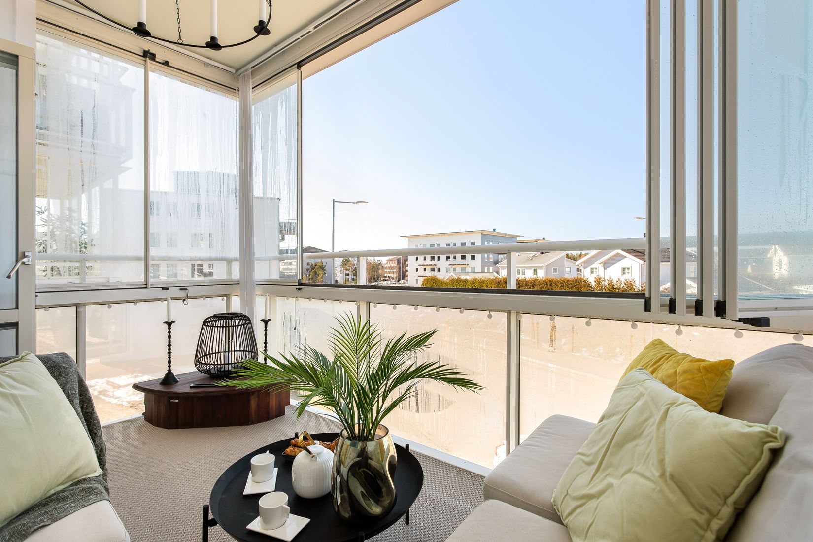 Lägenhet som präglas av ljus och rymd med öppen planlösning mellan kök och vardagsrum. Här bor du på välplanerade 67 kvm fördelat i 3 r.o.k. Modernt och fullutrustat kök i klassiskt vitt med bra arbets- och avlastningsytor. Från köket nås den otroliga inglasade balkongen i härligt sydväst läge som ger rikligt med sol. Med det höga läget sitter ni ogenerat och har utblick över villataken. Stort och luftigt vardagsrum med plats för soffgrupp. Helkaklat badrum i stilrent utförande. Kakel i vitt och klinker i bronserande toner. Två rymliga sovrum. Trevlig hall med bra utrymme för ytterkläderna.