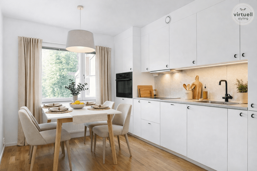 Invändigt präglas ytskikten av enhetliga ekparkettgolv och vitmålade väggytor. Tilltalande atmosfär för såväl avkoppling som umgänge med stora sällskap. Köket som renoverades år 2021 är i genomgående ljus färgskala och består av kyl/frys, integrerad diskmaskin, ugn och spishäll. Totalt två sovrum med gott om förvaringsmöjligheter, säng och ytterligare möblering. Duschrummet som renoverades år 2021 är helkaklat och har duschvägg i industriglas, handduksvärmare, toalett och kommod. I anslutning till entréhallen finns en separat klädkammare med fönster. Den härliga balkongen har plats för ett mindre bord samt stolar.