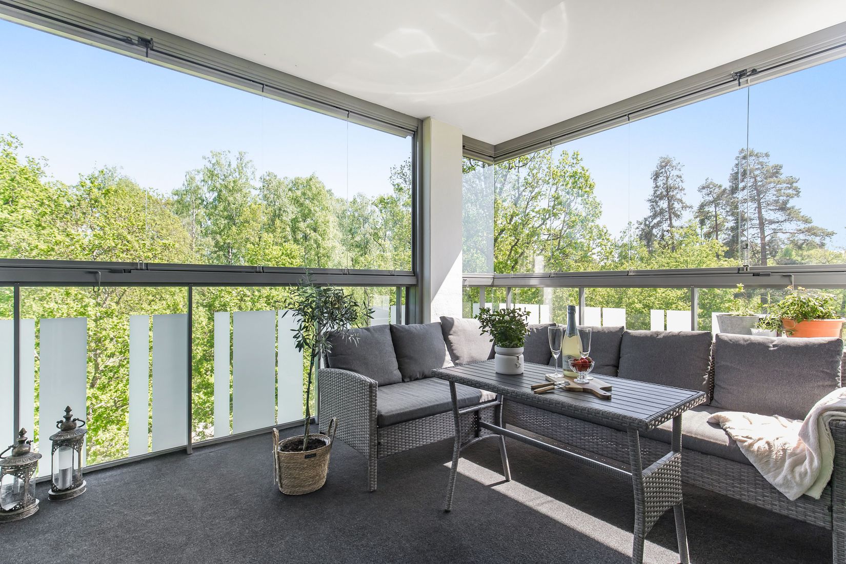 Det moderna köket från HTH erbjuder gott om förvaring, här finns det rostfria vitvaror och plats för matbord för 6-8 personer. Köket är öppet mot vardagsrummet, detta gör hela rummet öppet och socialt. Vardagsrummet ger plats för soffgrupp, tv och annat möblemang. Vidare erbjuds två stora sovrum, klädkammare och badrum med golvvärme och tvätt- samt torkmaskin. Det bästa med bostaden är den stora inglasade balkongen som ger plats för stora balkongmöbler.