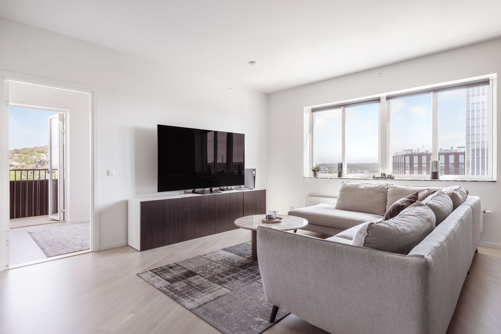 Välkommen till en mycket fin och välplanerad lägenhet som färdigställdes 2023. Här bor du högt upp utan insyn och med utsikt över Ramberget, Karlatornet och Göta Älv. Stilrent kök med integrerade vitvaror och diskmaskin. Många lådor och skåp till förvaring och en snygg bänkskiva som arbetsyta. Vardagsrum med plats för soffa, soffbord och TV-möbel och här njuter du av utsikten över Karlatornet och Göta Älv. Bostadens största sovrum rymmer dubbelsäng med sängbord och har utgång till balkongen. Det andra sovrummet har plats för säng, sängbord och skrivbord och har även utgång till balkongen. Badrum med kombinerad tvättmaskin och torktumlare. Bostaden har bra förvaringsmöjligheter i skjutdörrsgarderob samt ett stort förråd inne i lägenheten. Högst upp i huset finns en takterass med vidsträckt utsikt över stadens ljus och vatten. Här i Karlastaden på Lindholmen bor du i ett expansivt område under utveckling med närhet till service, kommunikationer och skolor.