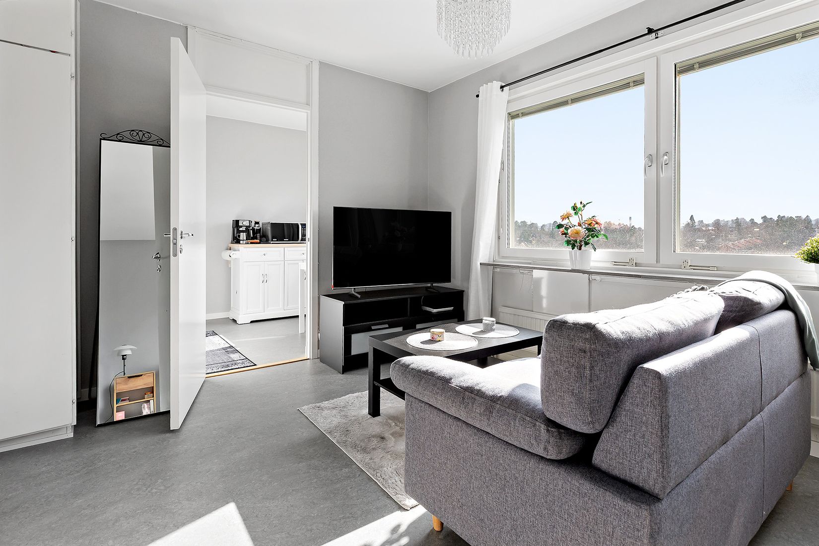 Ljus, central och välplanerad 1:a högt upp i huset. Möblerbar hall med förvaringsmöjligheter. Helkaklat och stort badrum. Stort, ljust och insynsskyddat rum med sovalkov. Ljust kök med matplats för ca 2-4 personer.