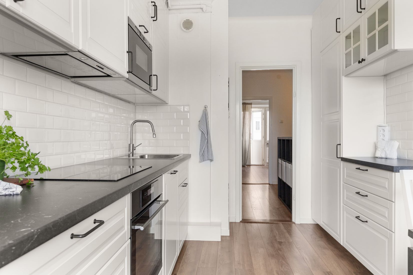 Lägenheten erbjuder en härlig rymd och har balkong med lugnt läge in mot innergården i öster. Hela lägenheten är renoverad under senare år med moderna materialval och ljusa färger. Stilrent kök renoverat 2018 med en trendig vit lucka och med matplats vid fönster med en glimt av havet. Helkaklat badrum renoverat 2020 med kakel och klinkers. Väldisponerade kvadratmeter med genomgående planlösning som ger ett ljus intryck, möblerbar hall i centrum och allrummet med med plats för både säng och soffa in mot innegården.
