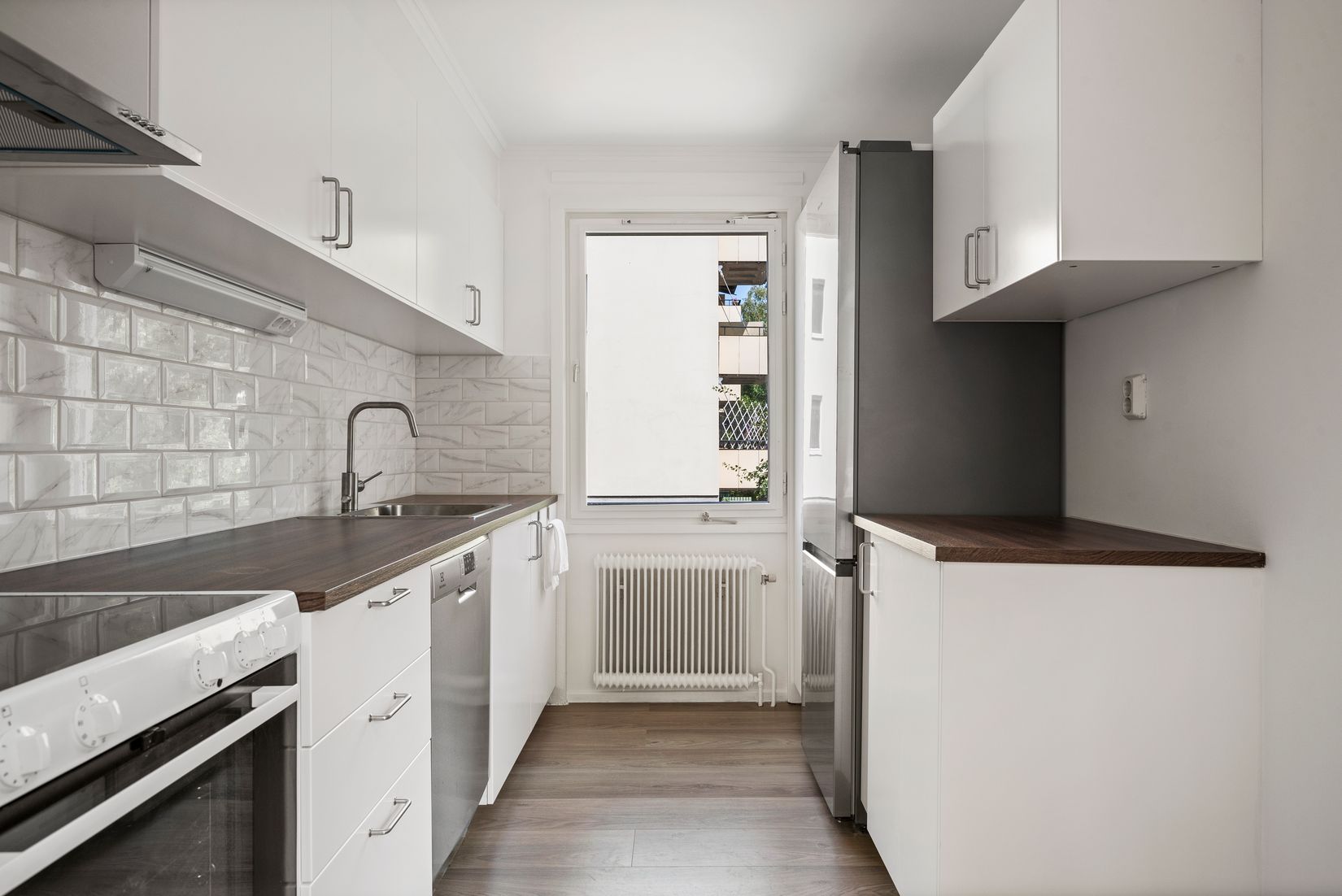 Nyrenoverad gavel-4:a med separat och helt komplett uthyrningsdel - delfinansiera ditt eget boende! En trappa upp i fint gavelläge, med fönster åt tre håll, finns denna nyrenoverade tre rum och kök samt ett välutrustat separat uthyrningsrum / generationsboende med nytt pentry och nytt duschrum. Huvudlägenheten är ljus och trivsam och har just utrustats med ett nytt kök, fått ett nytt enhetligt golv lagt och målats. En härlig balkong i bästa sydvästläge ger möjlighet till sol stora delar av dagen. Rofylld utsikt mot ett mindre skogsparti, där rådjur brukar hälsa på.