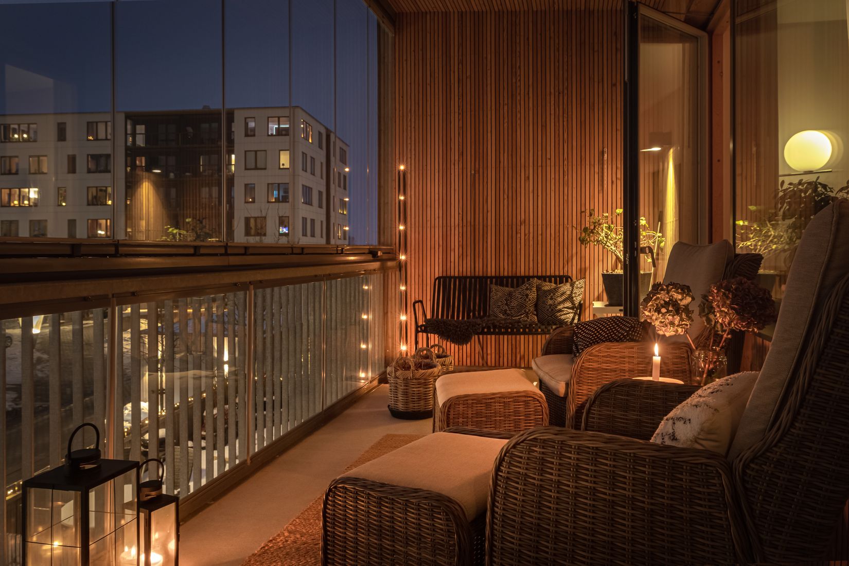 Med fokus på kvalité och nyskapande arkitektur stod bostäderna i Brf Tornfalken klara 2021. Naturnära materialval, generös takhöjd och magnifika ljusinsläpp bidrar till en vilsam atmosfär. Badrummet är inrett med helkaklade ytskikt och påkostad inredning som ger en lyxig hotellkänsla. Standarden är hög med köksinteriör från Marbodal, högkvalitativa vitvaror från Miele, bänkskivor i Carraramarmor och fönsterpartier från Velfac. Dessutom är lägenheten väldigt ljudisolerad och har skönt inomhusklimat, varmt på vintern och svalt om sommaren. Den öppna planlösningen i kök och vardagsrum möjliggör långbord med plats för flera och från vår till höst förlängs sällskapsytorna med den inglasade balkongen i söder. Här är havsutsikten ständigt närvarande som en vacker kuliss vid sällskapsytorna. Balkongen som nås från två altandörrar är inbjudande med plats för både loungegrupp och matplats. Ribbpanelen som följer väggarna upp mot taket tillför ett trendigt och smakfullt uttryck. På uteplatsen vid entrén kan förmiddagssolen fångas fram till 12.00 och sedan är här skön skugga resten av dagen.