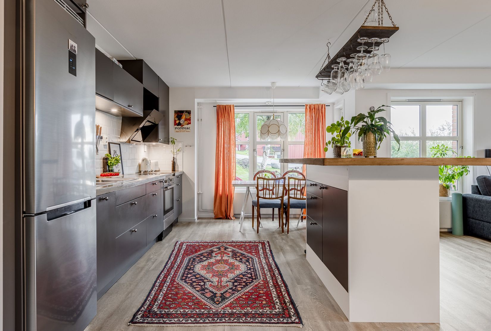 Bostaden har en härlig öppen planlösning vilket gör att den känns stor och rymlig. I köket finns gott om förvaring, kyl/frys, ugn, spis, fläkt och diskmaskin. Matplatsen finns i ett burspråk som öppnar upp sig mot vardagsrummet. Både vardagsrummet och det väl tilltagna sovrummet har fönster mot Åresjön och Renfjället. Från vardagsrummet når man den härliga altanen, där man kan sitta och se fiskarna vaka i Åresjön under sommaren.