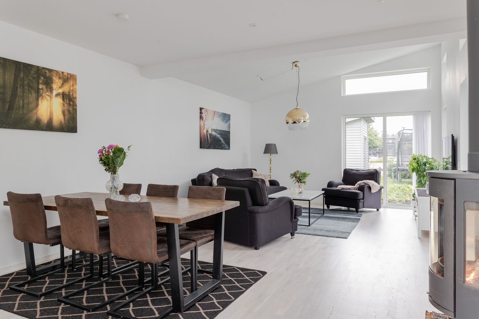 Välkommen till Gulli Petrinis väg 18 och detta bostadsrättshus med villakänsla! Här finner ni ett boende om 126 väldisponerade kvadratmeter på lugna och familjevänliga Vikaholm. Bostaden fördelar sig över två plan och erbjuder genomgående fina ytskikt, härligt ljusinsläpp och tilltagen takhöjd. På entréplan finner ni ett smakfullt och socialt kök med goda arbetsytor och skåpsförvaring. Köket fortsätter över i en trivsam matplats och vardagsrum med kamin som höjer mysfaktorn. Vardagsrummet har goda möbleringsalternativ med underbar rymd och stora fönsterpartier som ger ett fint ljusflöde. På detta våningsplan finns även ett sovrum, en hall med goda förvaringytor samt ett badrum med praktisk tvättdel. På bostadens övre plan har man två rymliga sovrum, ett allrum och ett helkaklat badrum med badkar. Till bostaden hör även en lättskött trädgårdstäppa med härlig grönyta, ett uteförråd samt en egen uppfart och carport. Perfekt boende för den som vill bo bekvämt och modernt med en hög standard.