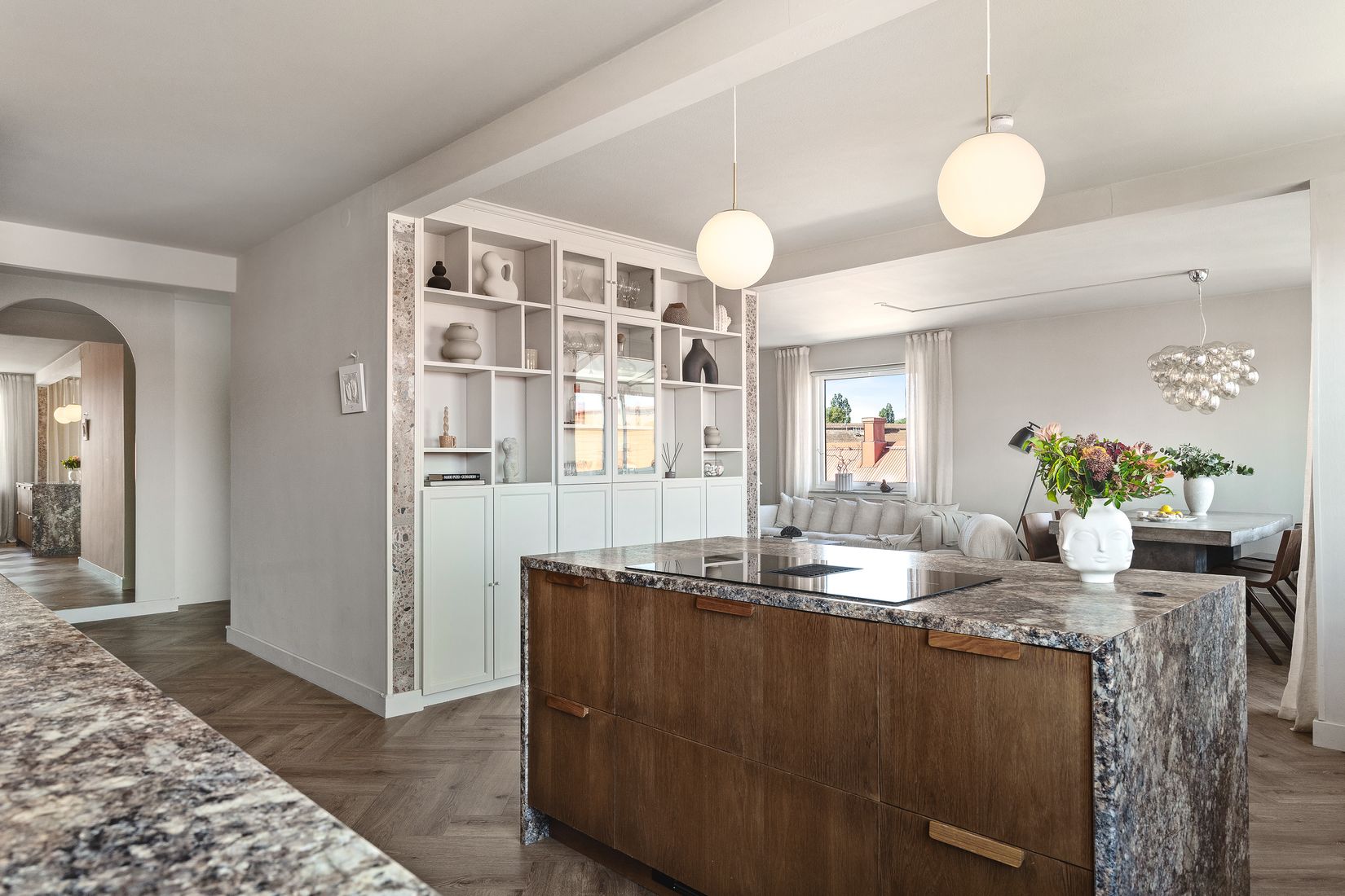 högst upp i huset, våning 6 av 6! Här möts ni av ett hem som renoverades med stor omsorg och smakfullhet under år 2022, vilket gör att lägenheten är i absolut toppskick.