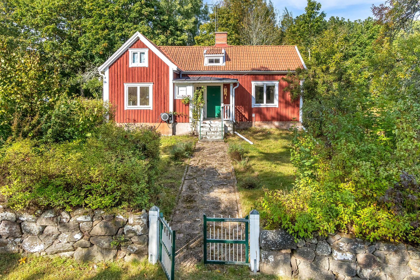 Det här är verkligen romantik, jättemysigt! Huset byggdes 1876 och i äldre handlingar finns det nämnt till "Gullet", "Peterslund" och "Skomakartorpet". Här bodde man permanent fram till 1960-talet och sedan dess har det nyttjats som fritidsbostad. Huset är beläget på en stor, mogen och grönskande trädgårdstomt med väldoftande syrener, fruktträd och bärbuskar. Här finns ett forna bykhus/tvätthus som moderniserats till en trivsam gäststuga med sovloft och med gräns och utsikt mot vattendraget/bäcken. Mer finns ett uthus innehållande vedbod, redskapsbod och dass.