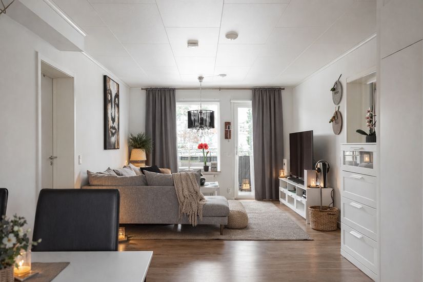 På våning 3 av 4, med hänförande utsikt över sjön Mjörn, finner vi denna välplanerade och mycket välhållna trerummare om 72m². Här erbjuds en tilltalande öppen planlösning mellan kök och vardagsrum, två sovrum där bägge är försedda med garderober, kaklat badrum med tvättavdelning och bra med förvaringsskåp, rymlig klädkammare samt stor balkong i söderläge med sol från tidig morgon till sen eftermiddag. Från uteplatsen vid entrén njuter man av kvällssol och sjön som glittrar i bakgrunden. Här bor man bekvämt med direkt närhet till allt som Stadsskogen har att erbjuda, så som gym, pizzeria, mataffär och vackra naturstigar. Lägenheten är genomgående ljust färgsatt med fina golv. Nuvarande ägare har dessutom uppgraderat lägenheten rejält från sitt standardutförande, som kyl och frys i fullhöjd, tvättbänk i badrummet, duschvägg samt kompletterat badrummet med flera förvaringsskåp.