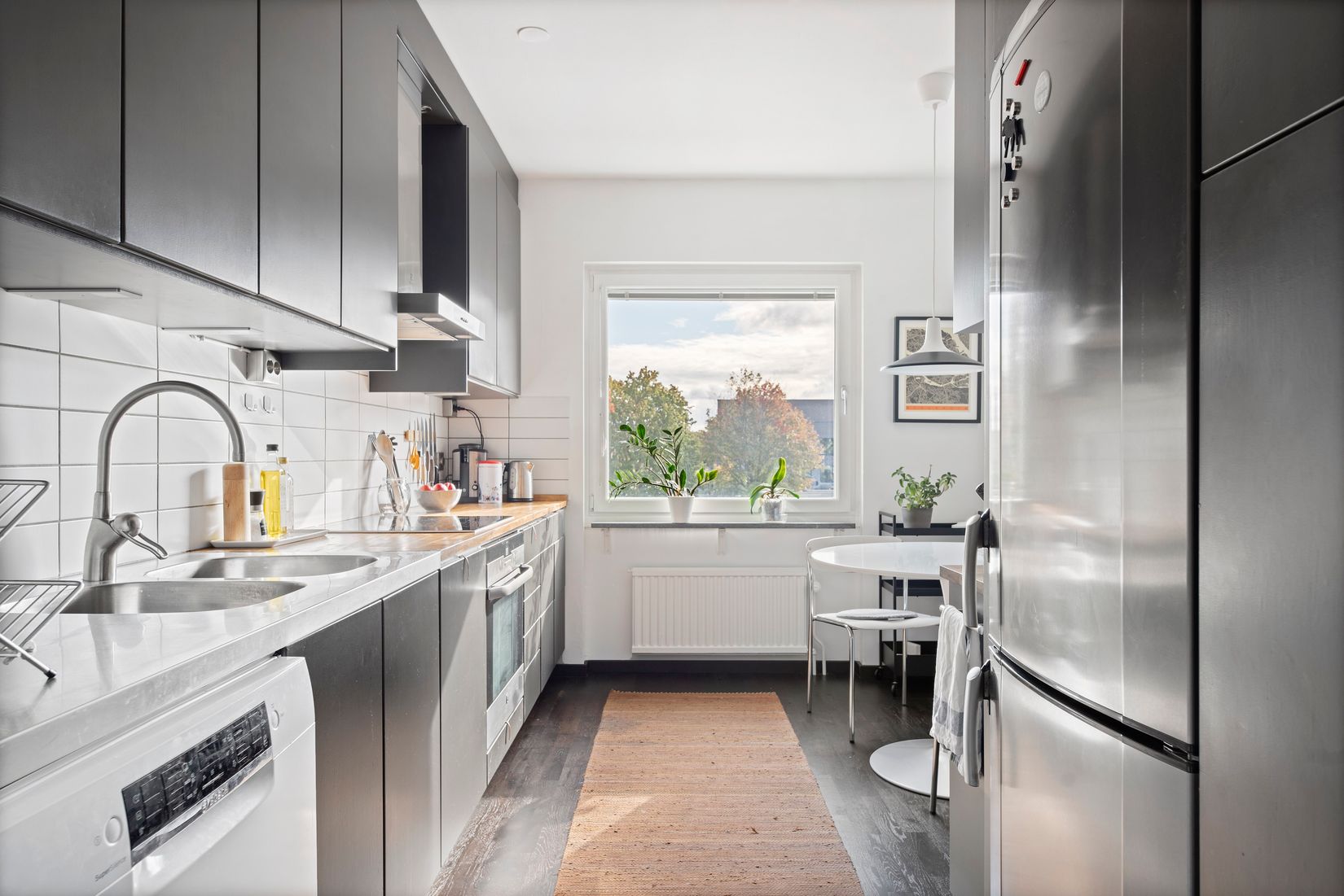 Charmig tvåa belägen på 1½ trappa i ett rofyllt område. Lägenheten är i mycket gott skick, med ett kök som renoverats under 2021 och ett badrum från 2014. Hallen pryds av ett stilfullt Terrazzogolv, har flera fint bevarade originalskåp samt en ljudisolerande säkerhetsdörr. Från vardagsrummet når du en balkong i sydostläge där du kan njuta av solen från morgon till eftermiddag och blicka ut över höga, grönskande träd. Köket är både smakfullt och av hög standard. Här bor du ostört, då gatan utanför har minimal trafik.