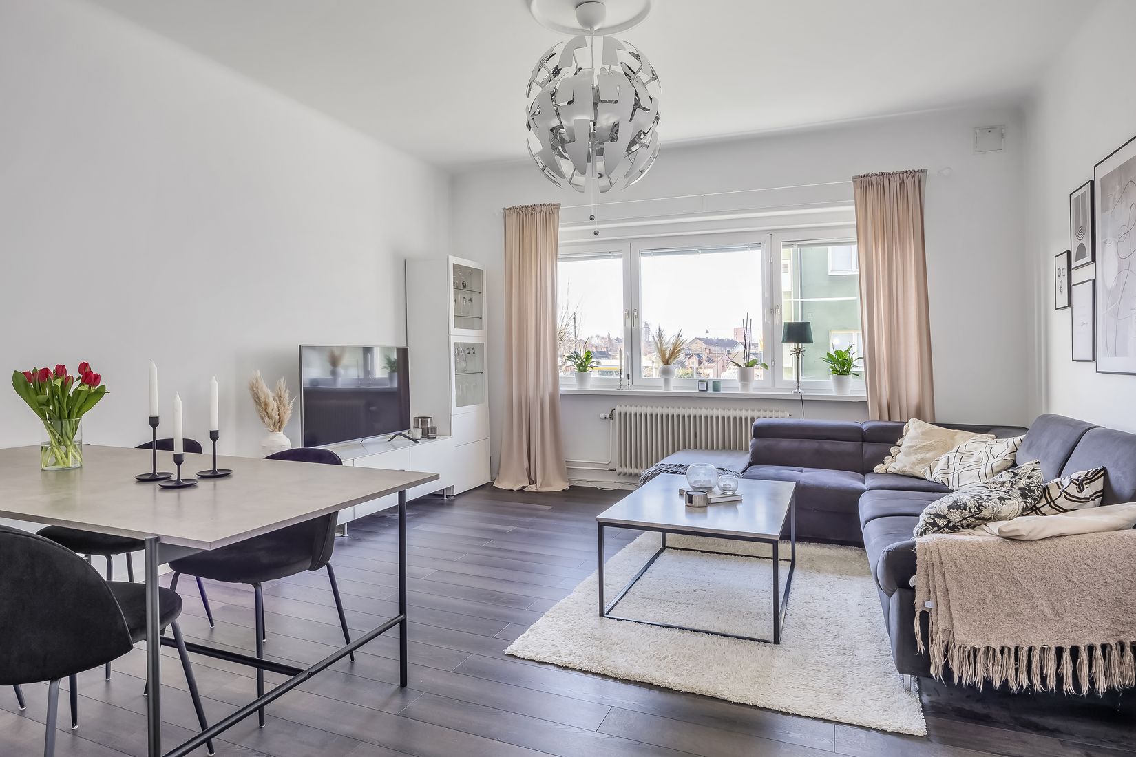 Nu har vi nöjet att presentera denna kvadratsmarta tvårummare belägen på våning två i charmig 30-tals fastighet. Här njuter vi av väl tilltagen takhöjd i kombination med genomgående fräscha ytskikt som skapar en underbar känsla av rymd. Med en förändrad planlösning har bostaden blivit berikad med ett separat och mysigt sovrum samt ett fint kök i nära anslutning till vardagsrum. Här bjuds även på fräscht badrum, stort vardagsrum med härligt utsikt samt gott om utrymme för förvaringsmöbler och dubbla tillhörande förråd. Föreningen har en lummig och gemensam innergård som får nyttjas av de boende. Precis utanför husknuten finner vi dessutom underbar grönskande park.
