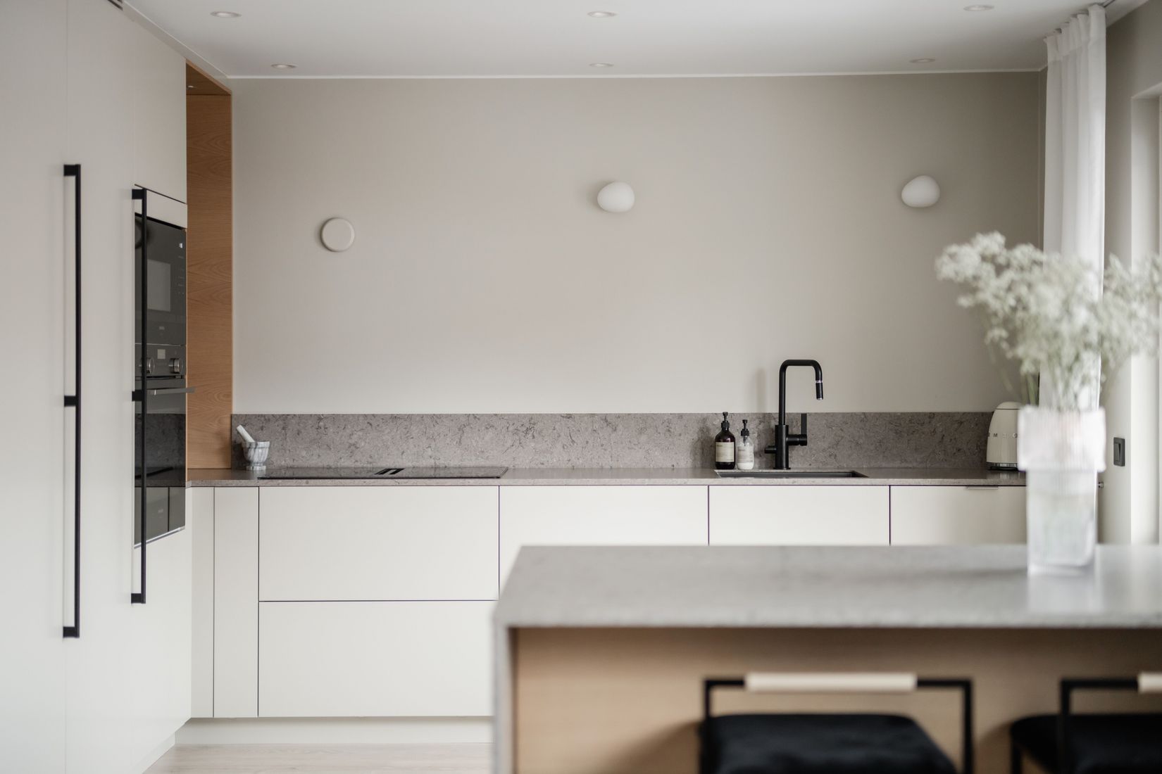 Med en ljus och öppen planlösning blir bostaden en naturlig samlingsplats för både vardag och fest. Det moderna köket imponerar med sina ljusa inredningsval i jordiga toner som elegant kontrasterar mot mörkare detaljer. Här finns alla förutsättningar för att skapa inspirerande matupplevelser. Intill köket finns en balkong där du kan njuta av morgonsolens första strålar – en idealisk plats för ditt morgonkaffe.