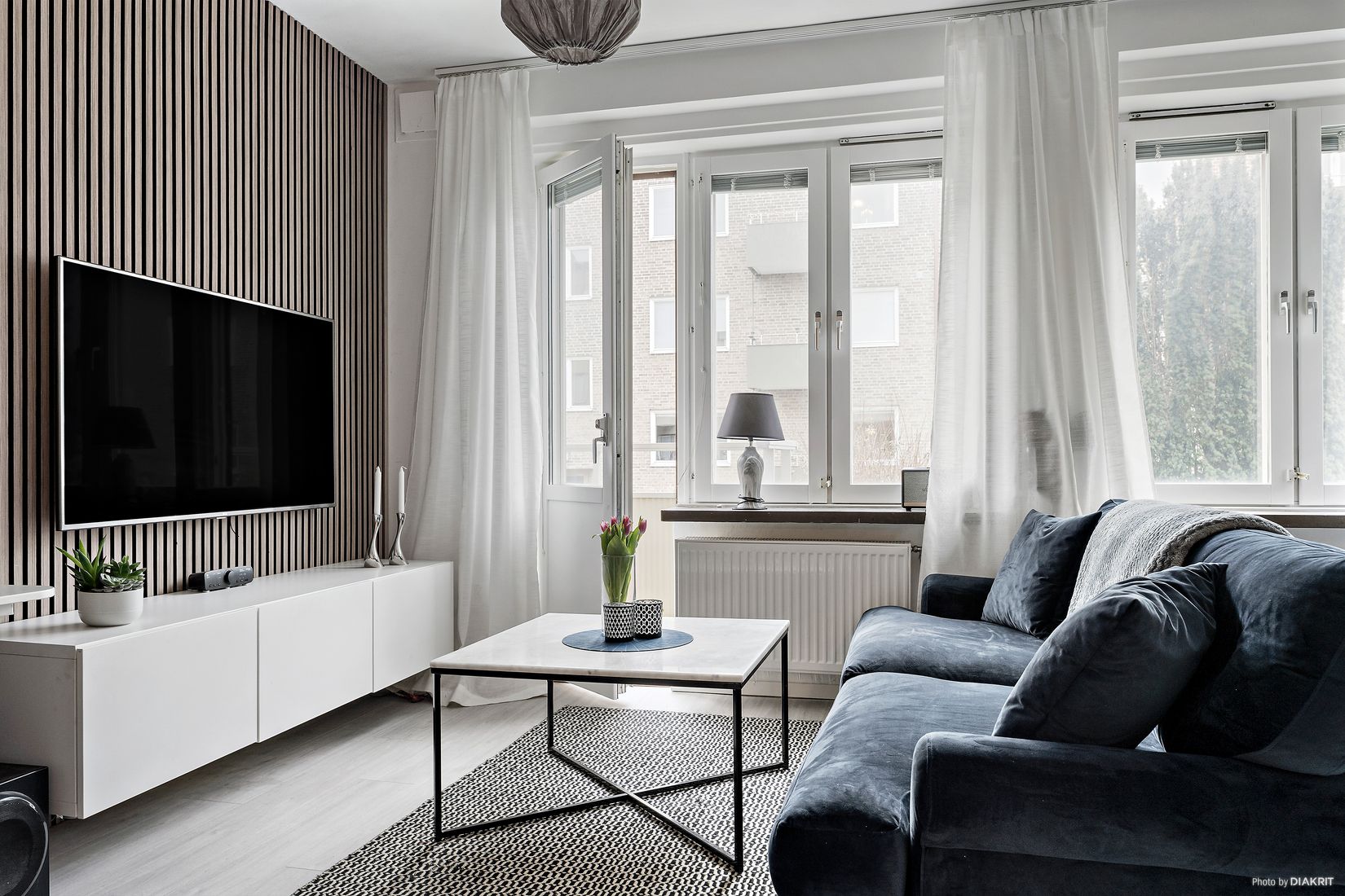 Lägenheten är genomgående ljus och modern, med en smart planlösning som skapar en trivsam känsla. IKEA-köket, som renoverades 2022, är en riktig pärla med vita luckor, stilrena svarta detaljer och en mörk bänkskiva som fulländar det moderna intrycket. Här finns plats för matlagning och en matplats intill fönstret som vetter mot innergården. Köket och vardagsrummet binds fint samman i en öppen planlösning, vilket skapar ett naturligt flöde genom bostaden. Från vardagsrummet når du dessutom en balkong, perfekt för att njuta av morgonsolen och en lugn stund med utsikt över innergården. Bostaden erbjuder också ett rymligt sovrum med fönster och plats för en dubbelsäng samt extra förvaring. Det moderna badrummet från 2022, är utrustat med golvvärme, dusch, kommod och förberett för tvättmaskin och torktumlare, allt för att underlätta vardagen. Golv och väggar går i ljusa toner som skapar ett tidlöst uttryck, förstärkt av takets spotlights.