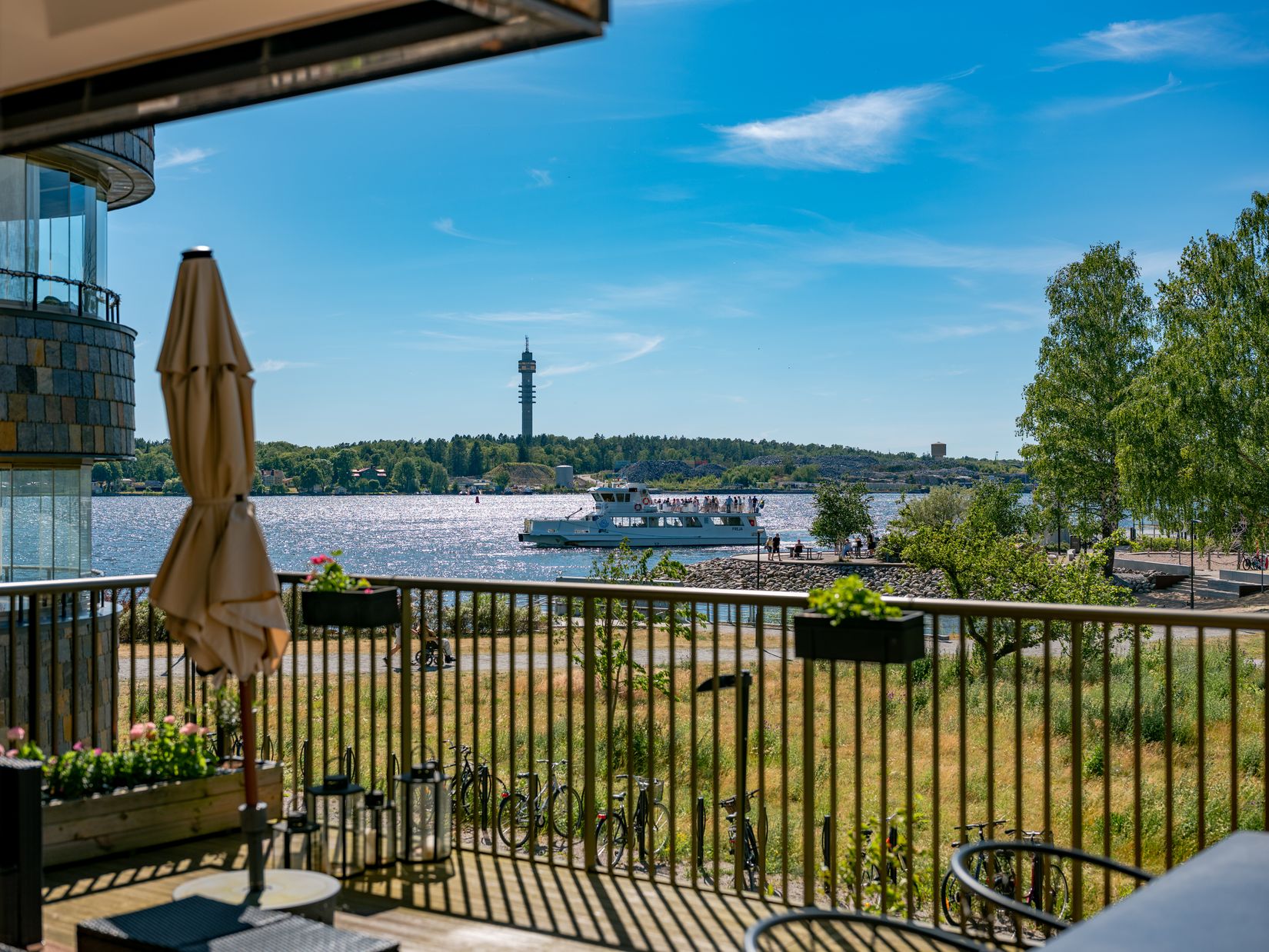 Den stora terrassen på 34 kvm är en av bostadens verkliga pärlor, med sitt perfekta solläge och plats för både avkoppling och umgänge. Här kan du njuta av soliga dagar och ljumma kvällar