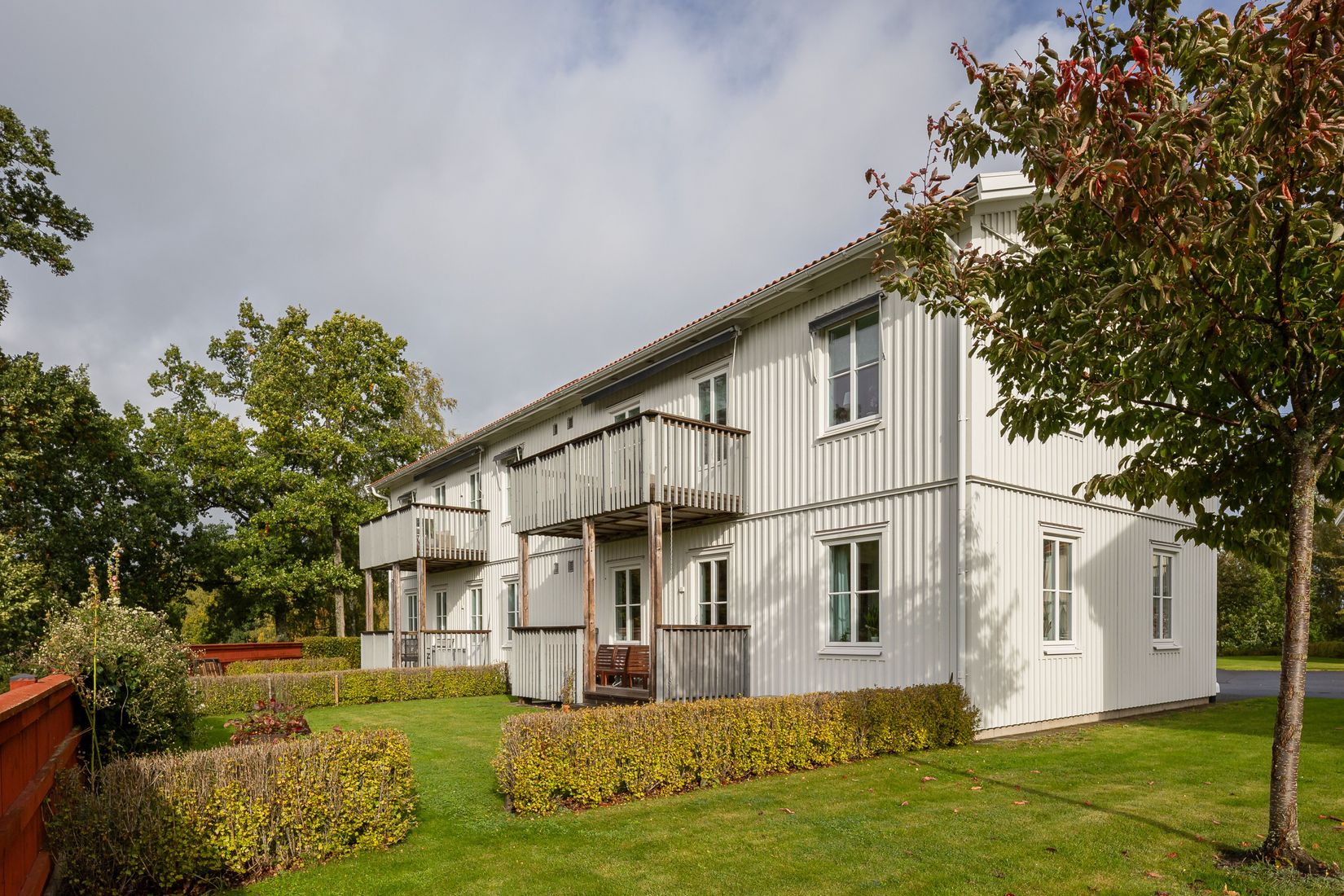 Husen är byggda som i en cirkel som omsluter en trevlig innergård med grillplats och en liten lekplats.