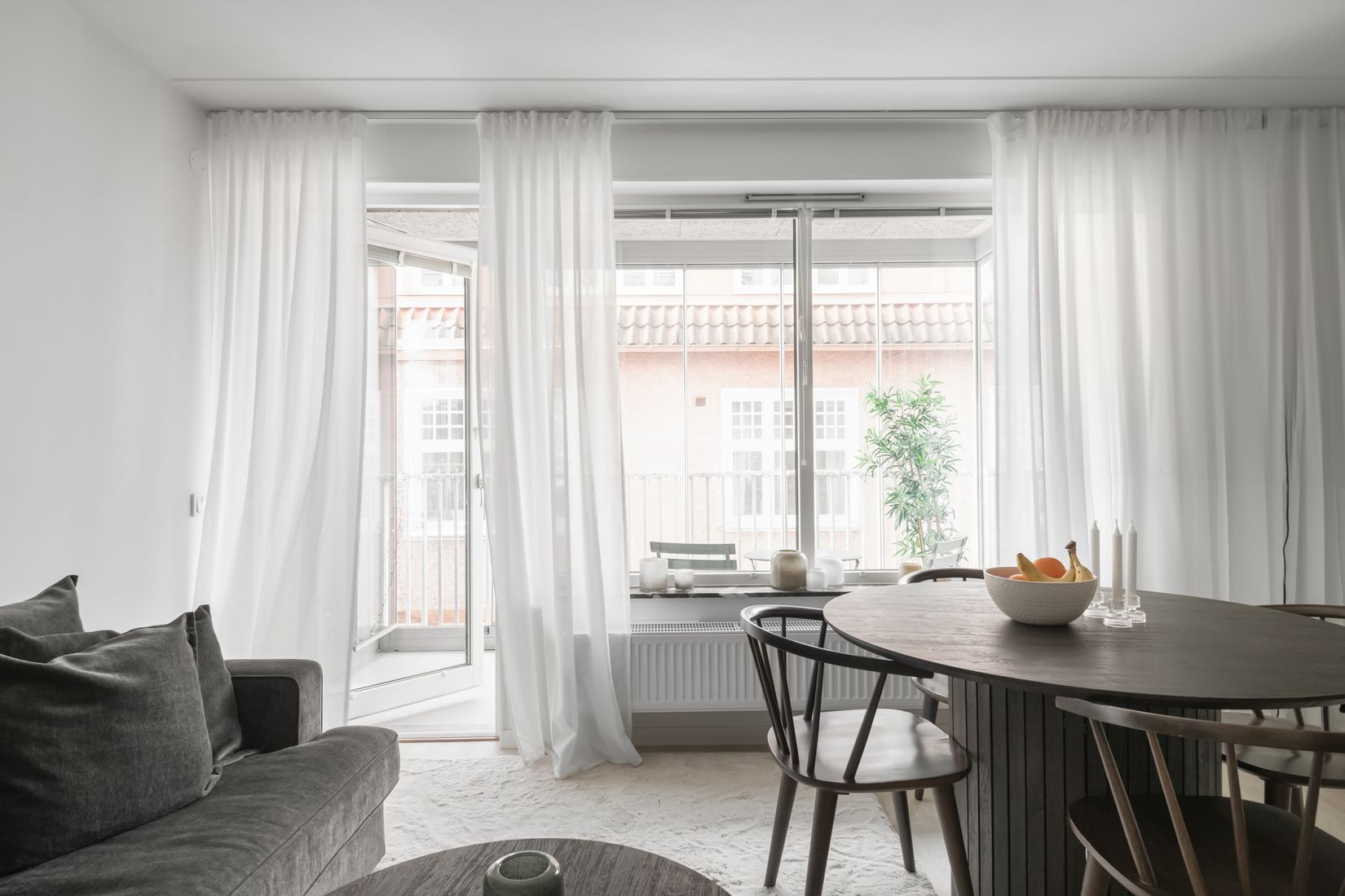 Nu erbjuds en kvadartsmart 1:a där varje kvadratmeter utnyttjas väl. De genomgående fina materialvalen och de ljusa ytskikten skapar en perfekt bas att inreda efter och sätta sin personliga prägel. Lägenheten har en öppen och social planlösning mellan kök och vardagsrum vilket bidrar till en känsla av rymd. Den praktiska sovalkoven bidrar med en given plats för sängen som skärmas av med gardiner och skapar en extra mysig sovplats. Rymlig inglasad balkong som blir en naturlig förlängning av bostaden och ett extra rum större delen utav året. Trots det mycket centrala läget kan du koppla av och njuta av lugnet. Vid extra varma dagar kan du öppna upp glaspartierna och låta friska vindar svepa förbi. Köket är utrustat med både över- och underskåp i vitt utförande med en modern köksinredning och full maskinell utrustning. Stilrent och helkaklat badrum med grått klinker på golv och väggarna pryds med vita kakelplattor. I Badrummet finns en praktisk tvättavdelning med både tvättmaskin och torktumlare samt bänk och vägghängda förvaringsskåp. Ytterligare förvaring finns i garderobslänga i hallen samt smart förvaring ovanför sovalkoven. Till lägenheten hör ett källarförråd.
