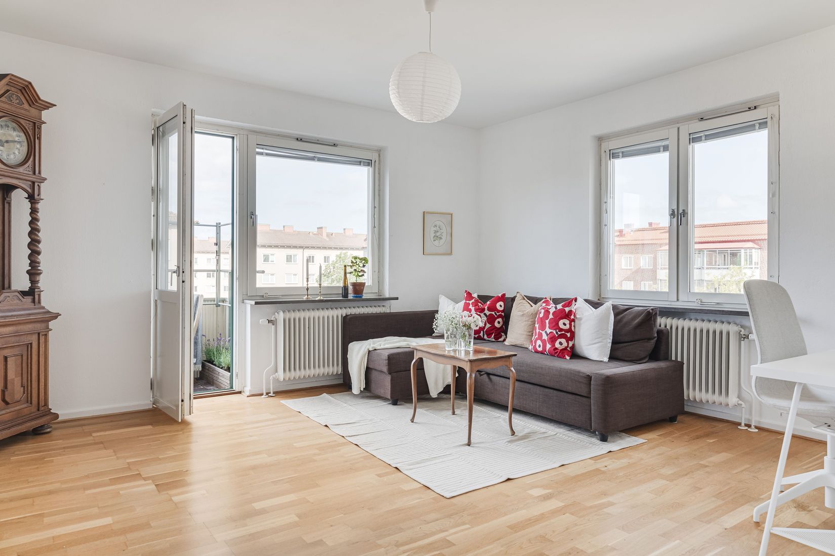 Alldeles intill Nobeltorget saluförs nu denna välplanerade hörntvåa om 59.9kvm med balkong på populära Vitemöllegatan. Bostaden ligger på ett insynsskyddat läge, högst upp i huset. Med stora fönsterpartier i tre väderstreck, ljusa kulörer och genomtänkta materialval skapas här en varm och hemtrevlig atmosfär. Bostaden bjuder på ett generöst sovrum, stilrent kök med goda arbetsytor och plats för matbord samt ett lättmöblerat vardagsrum med utgång till den härliga balkongen i solsäkra västerläge. Lägg därtill ett helkaklat badrum med dusch och goda förvaringsmöjligheter i bostaden. Med Nobeltorgets lugna läge finns närhet till natur, restauranger och god kommunikation. Här bor ni en välskött förening som äger marken och flera av de stora renoveringarna är redan gjorda. I föreningen finns även egna parkeringsplatser som medlemmar kan hyra, hobbyrum, föreningslokal och bastu som är renoverad under 2022. Under sommarmånaderna nyttjar man med fördel föreningens härliga och gröna innergård, en egen oas mitt i stan.