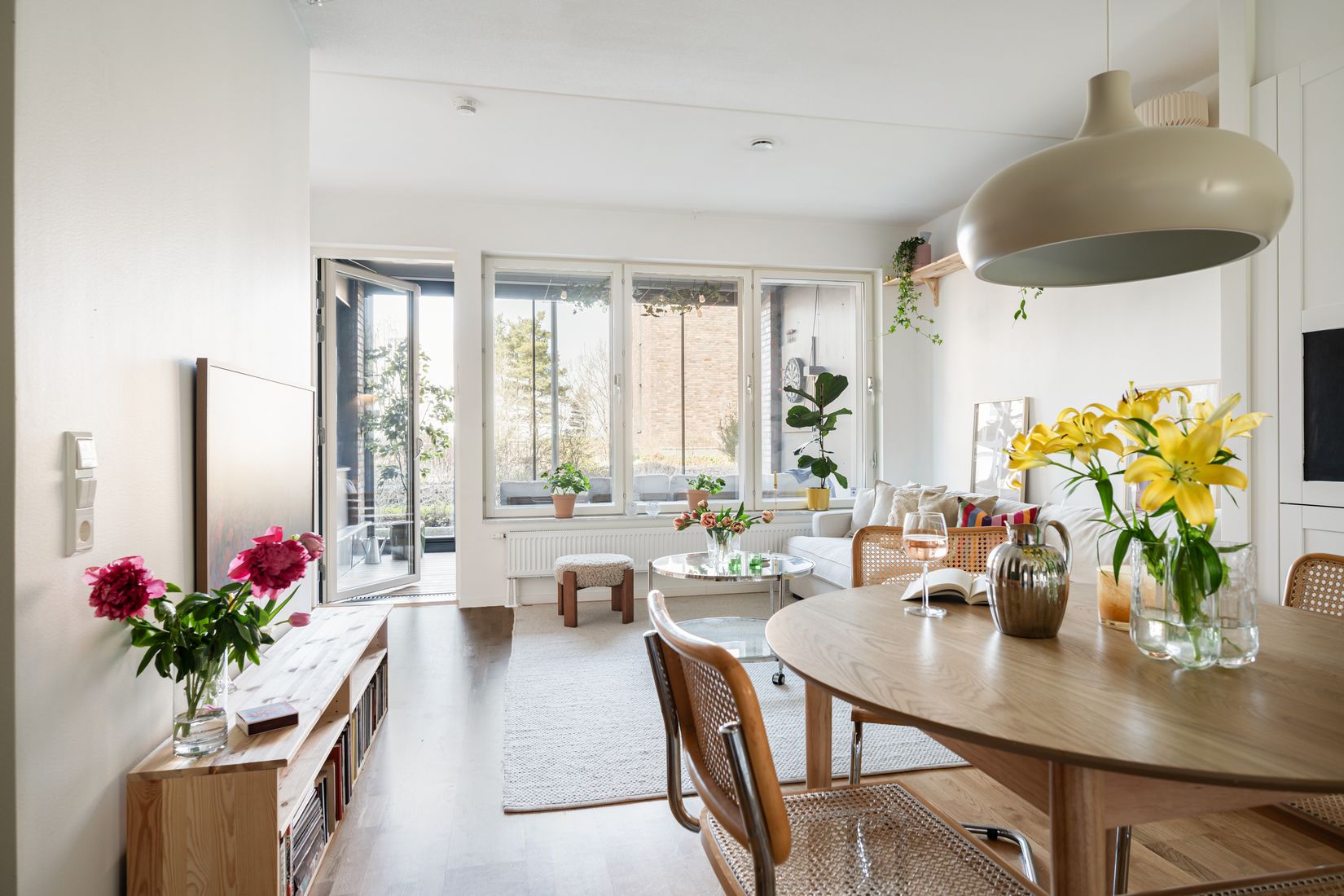 Välplanerade ytor, generös takhöjd och öppen planlösning i en underbar kombination. Bostadens stora fönsterpartier tillsammans med en gedigen takhöjd skapar ljus och rymd. Här erbjuds en lägenhet med genomgående hög standard, stilfulla materialval samt goda förvaringsmöjligheter. Bostaden präglas av tidlös elegans och ljusa färgval som skapar en perfekt genomgående bas för det skandinaviska hemmet. Köket är placerat i öppen planlösning mot vardagsrummet vilket skapar en social atmosfär. Signerat välrenommerade Marbodal med goda arbetsytor. Bostadens badrum har tvättmaskin samt torktumlare för att underlätta vardagen lite extra. Den inglasade uteplatsen går utmärkt att nyttja året om och är möblerbar då både loungemöbler eller utemöbler ryms. Varmt välkomna att trivas!