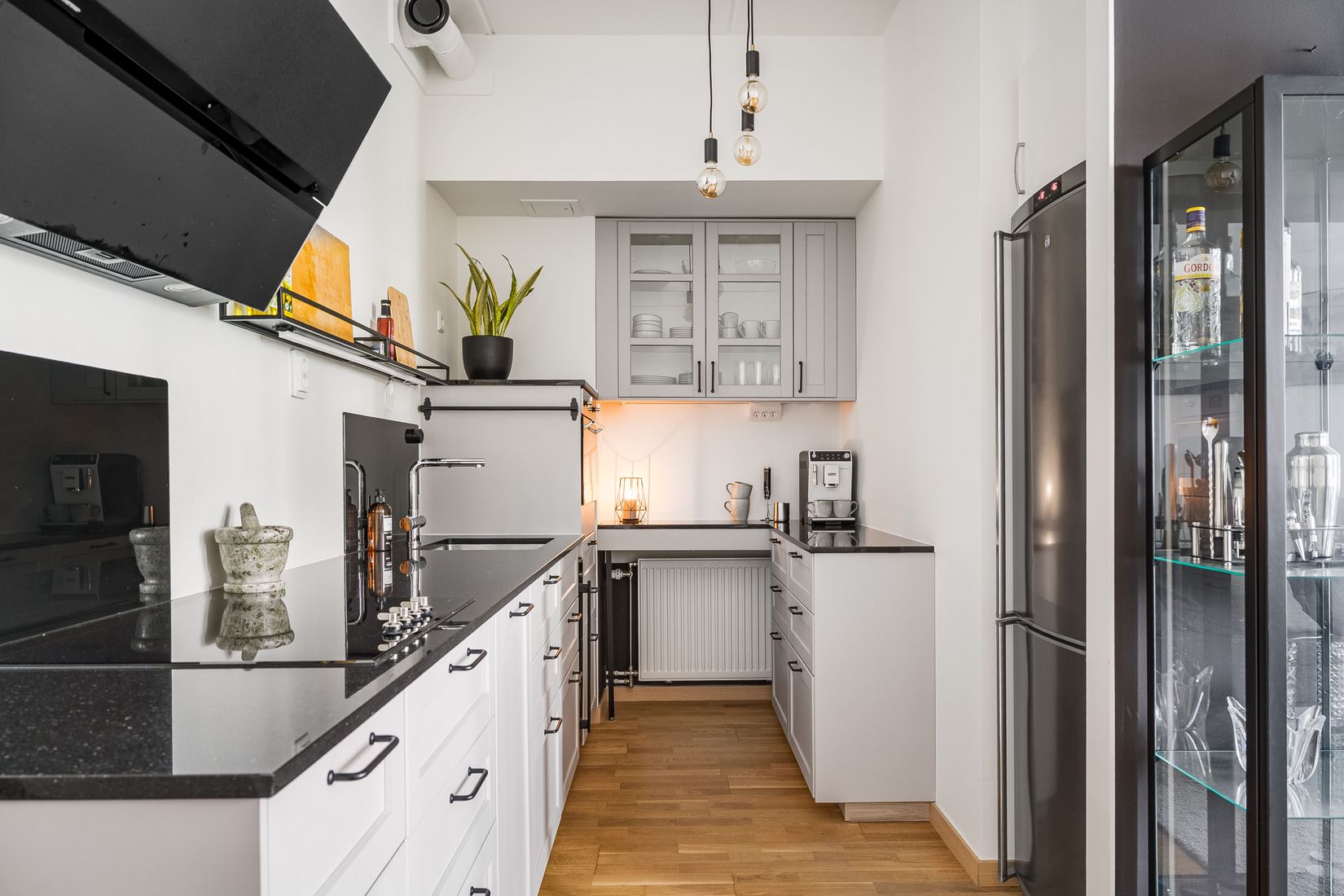 Varmt välkomna till denna magiska tvårummare i markplan med stor inglasad balkong/uterum och genomgående hög standard. Mycket påkostad bostad, totalrenoverat 2022-2023 med smakfulla materialval samt vissa ytskikt och del av kök kompletterat under 2024. Sobra ytskikt och slipade parkettgolv. Helt ombyggt kök med bl.a. bänkskivor i sten och vinkyl. Stort helkaklat badrum från 2013 med WC, dusch samt egen tvättmaskin och torktumlare med ovanliggande arbetsbänk.