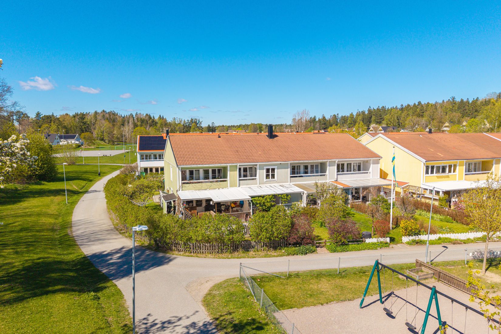 Tomten på 181 kvm bjuder på både en stenlagd uteplats på framsidan och en grönskande trädgård på baksidan. Här finns plats för umgänge, lek och avkoppling. Ett hem med möjligheter, välkommen att skapa ditt drömboende!