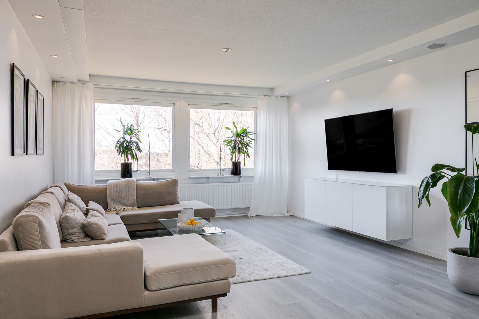 I hela bostaden finns dessutom inbyggda takhögtalare för en smart och stilren ljudlösning – perfekt för både vardag och när man är på feststämning. Mer förvaring finns genom en praktisk klädkammare i anslutning till vardagsrummet samt ett källarförråd.