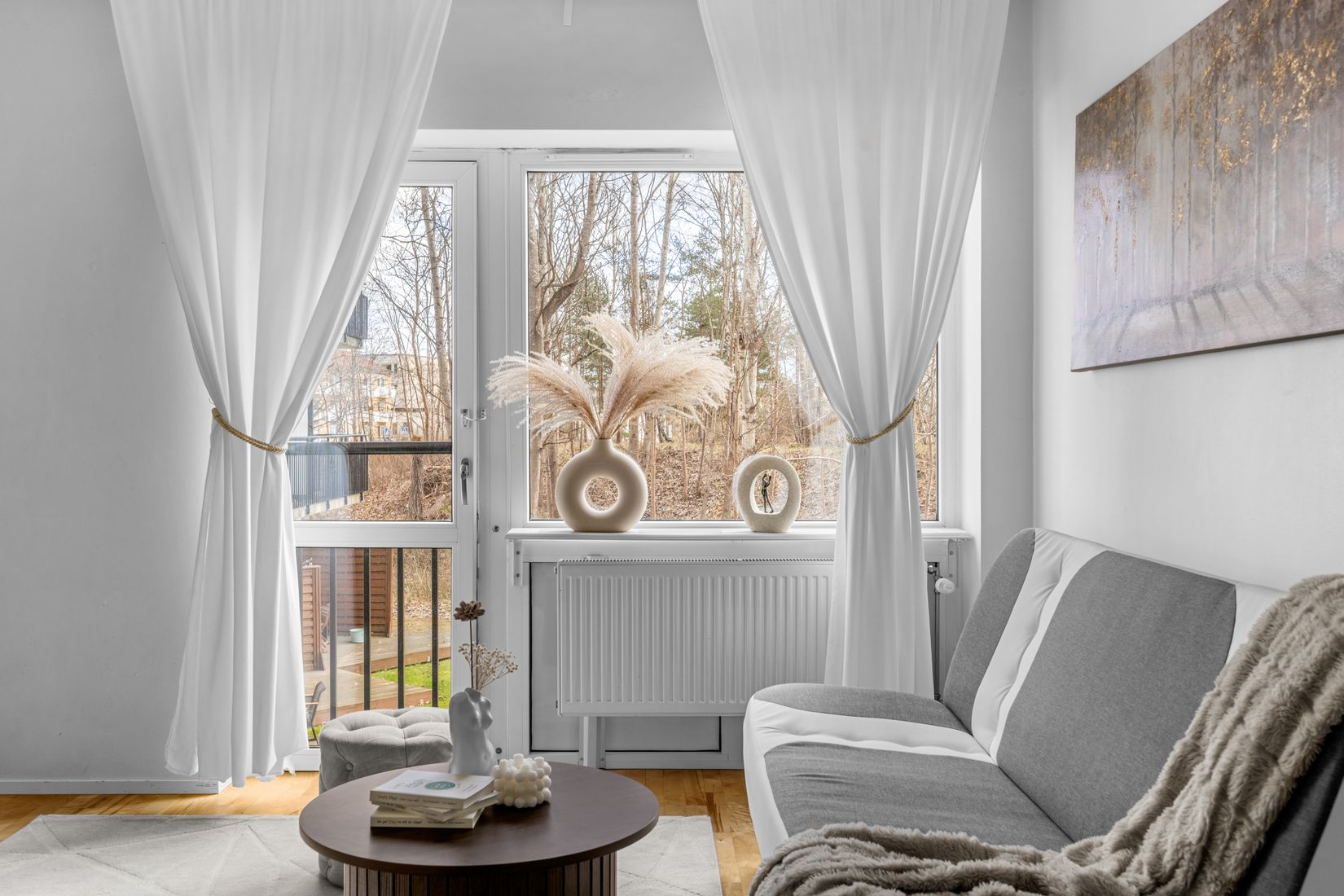 Bostaden erbjuder 36 väl genomtänkta kvm fördelade på en välkomnande hall med goda avhängningsmöjligheter och anslutning till köket och det helkaklade badrummet. Vidare in i bostaden möts ni av de sociala ytorna i form av ett rymligt och lättmöblerat vardagsrum. Tack vare den genomgående planlösningen har ni ett rikligt ljusinsläpp från de väl tilltagna fönstren i två väderstreck. Perfekta första bostad eller övernattningslägenhet!