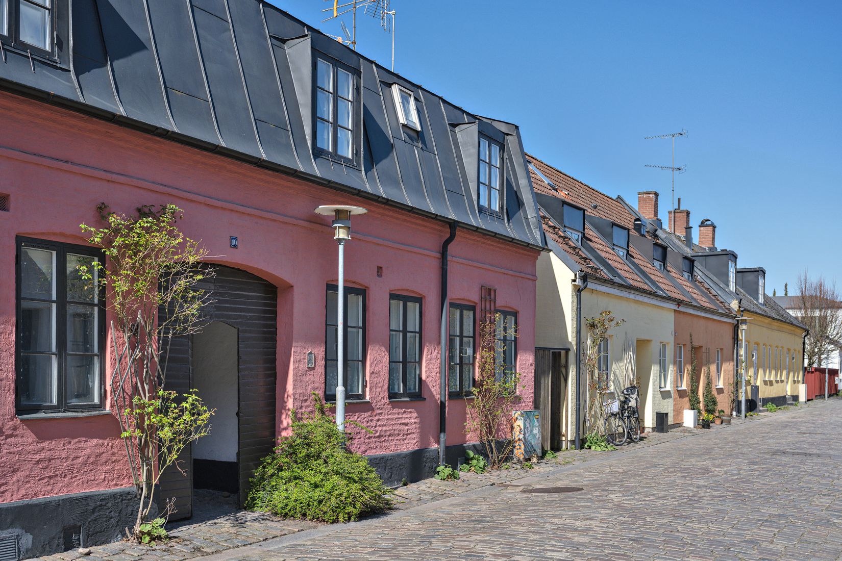 På lugn kullerstensgata, i ett utav Lunds äldsta kvarter, trängs gamla gatuhus från förra seklet. Här finner vi det pittoreska, rosamålade gatuhuset som vi med stolthet nu förmedlar. Innanför den stora träporten, med ingång från Hospitalsgatan, döljer sig en välskött trädgård med gräsmatta och blommande växter. Huset är byggt i vinkel och har en egen stenbelagd uteplats i söderläge. Här står trädgårdsmöblerna i väntan på släkt och vänners besök under våra varma sommarmånader. Ett stenkast härifrån ligger Mårtenstorget och Lunds centrum men på Hospitalsgatan känns allt lugnt, med sparsam trafik och fridfull atmosfär.