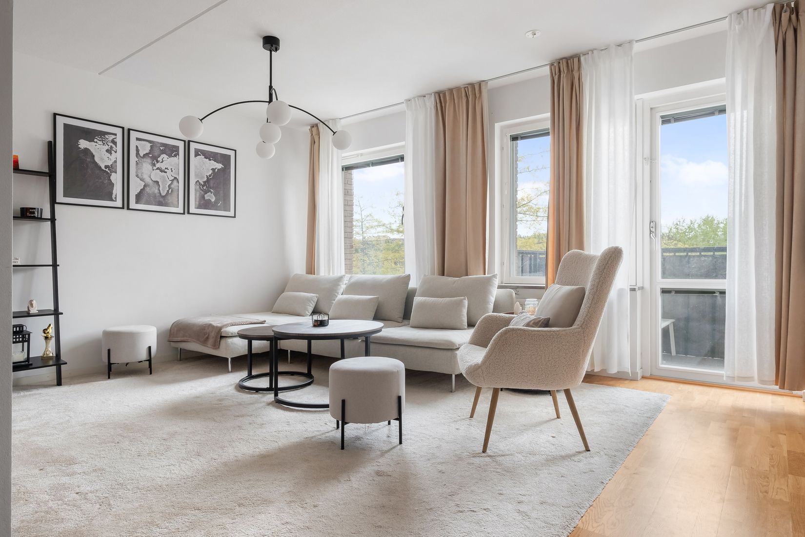 Köket är fullutrustat med allt du behöver för att trivas i vardagen. Härifrån nås även den möblerbara balkongen i söderläge – en solig oas perfekt för både morgonkaffet och kvällshänget.