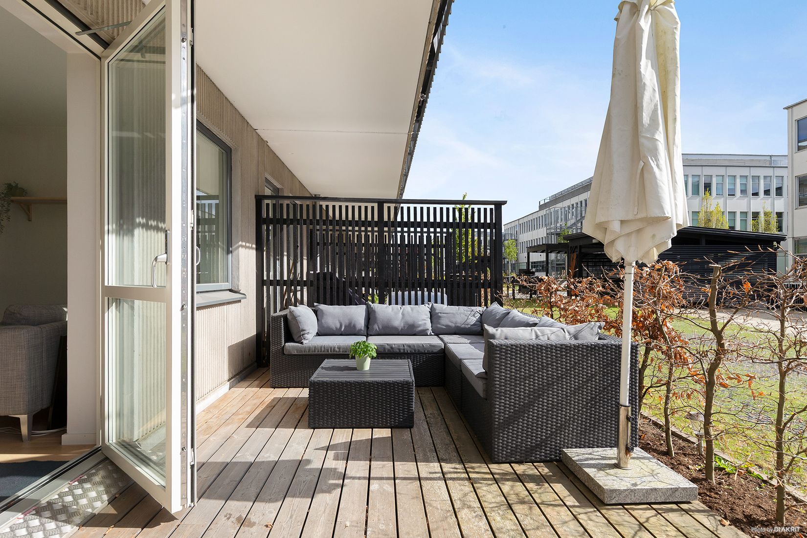 Ni möts av en bostad med mycket gott om nyskickskänsla, genomgående parkettgolv, stor uteplats i perfekt solläge, stort helkaklat badrum med tvättmöjligheter, kök/vardagsrum med öppen planlösning, härligt centralt läge, ljusa färgval, fina materialval mm.