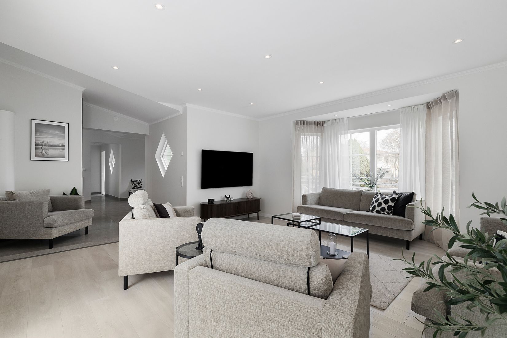Välkommen till Åkervägen 23 där de nuvarande ägarna inte sparat på något när de med kvalitet och minutiös sammanhängande känsla för alla detaljer genomgående har renoverat denna villa i tre halvplan. Dessutom finns allt på en plan härlig tomt som förutom att det finns gott om plats för barnens aktiviteter även finns ett stort dubbelgarage. Förutom att renoveringen har omfattat allt invändigt så har även all el och VVS och andra installationer bytts ut. Även bergvärmepumpen är ny från 2025.