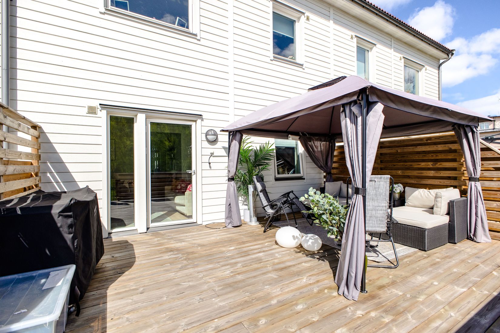 Här möts man i ett radhus i brf-format som erbjuder allt och lite till. Med ett rymligt kök och fina ljusa rum präglas här design och stil. Och med en magisk uteplats som borgar för mysiga grillkvällar får den här bostaden inte missas.