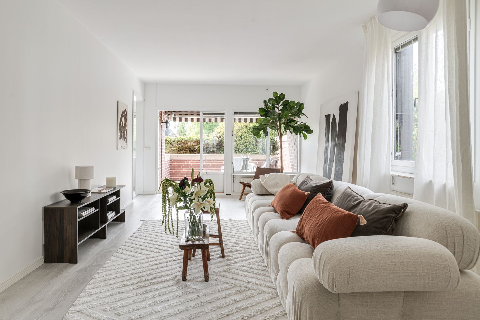 I stabil och solid bostadsrättsförening med låg skuldsättning och låg avgift finner ni denna ljusa och genomgående gaveltrea i markplan med egen uteplats i soligt västerläge. Bostaden har på senare år moderniserats och fräschats upp och är i fint skick.