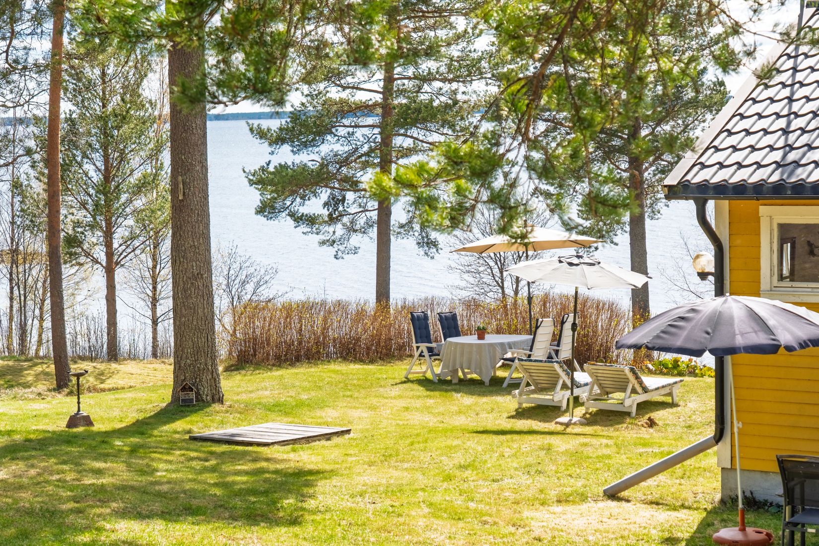 Huvudbyggnaden har högt vackert läge nära stranden med fantastisk utsikt över fjärden. Liggande träpanel, plåttak, luftvärmepump, elradiatorer samt braskamin. Fin rumsindelning med hall, kök, vardagsrum, två sovrum, badrum och inglasat uterum i västerläge med havsutsikt. Uteplatser, fina gräsytor och sittplatser finns runt om byggnaden med härliga sollägen från tidig morgon till sen kväll. Fin strandstig ner till båt- och badplats där man avnjuter fantastiska solnedgångar och härliga bad. Gäststuga samt ett förråd finns även på tomten.