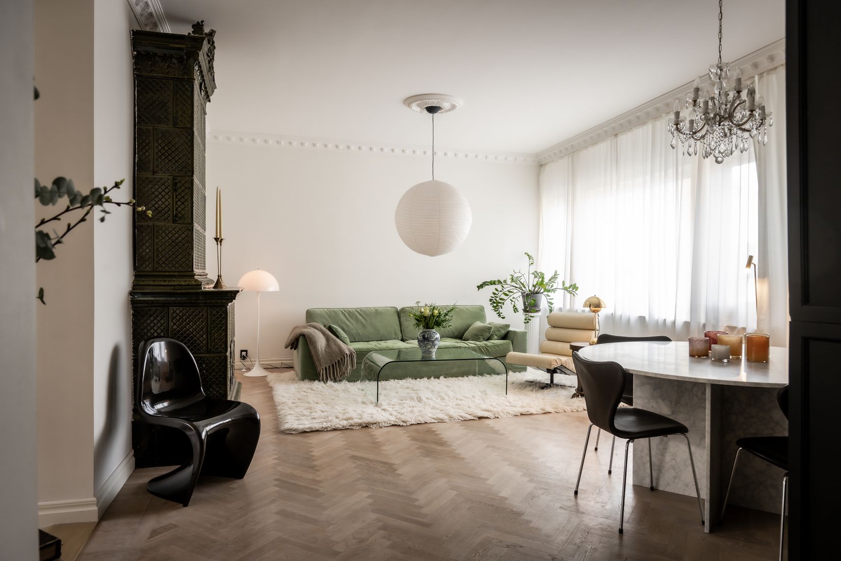 En trappa upp i den vackra fastigheten på Sturegatan 56A ges nu tillfälle att förvärva en av Villastadens, och kanske Borås bäst planerade sekelskiftestreor. Bostaden är omsorgsfullt renoverad med vackra detaljer från fastighetens ursprung och erbjuder det mesta vad gäller bekvämligheter och funktion kombinerat med en slående charm och personlighet. Överdådet av stuckaturer, ansenlig takhöjd, stiltrogna fönsterpartier och detaljskurna listverk kompletteras med klassiska fiskbensparketter. Detaljer som den vackra kakelugnen, burspråk och imponerande takrosetter samsas naturligt med vår tids design. Utöver det exklusivt utrustade köket bör det spektakulära vardagsrummet i öppen planlösning med matsalsplatsen nämnas, vilket blir hemmets givna mittpunkt med sin balanserade interiör av vackert sekelskifte och salongsliknande volymer. Den stora och ljusa våningen har genomgående platsbyggda förvaringslösningar, två generösa sovrum varav ett med walk in closet och ett femstjärnigt badrum.