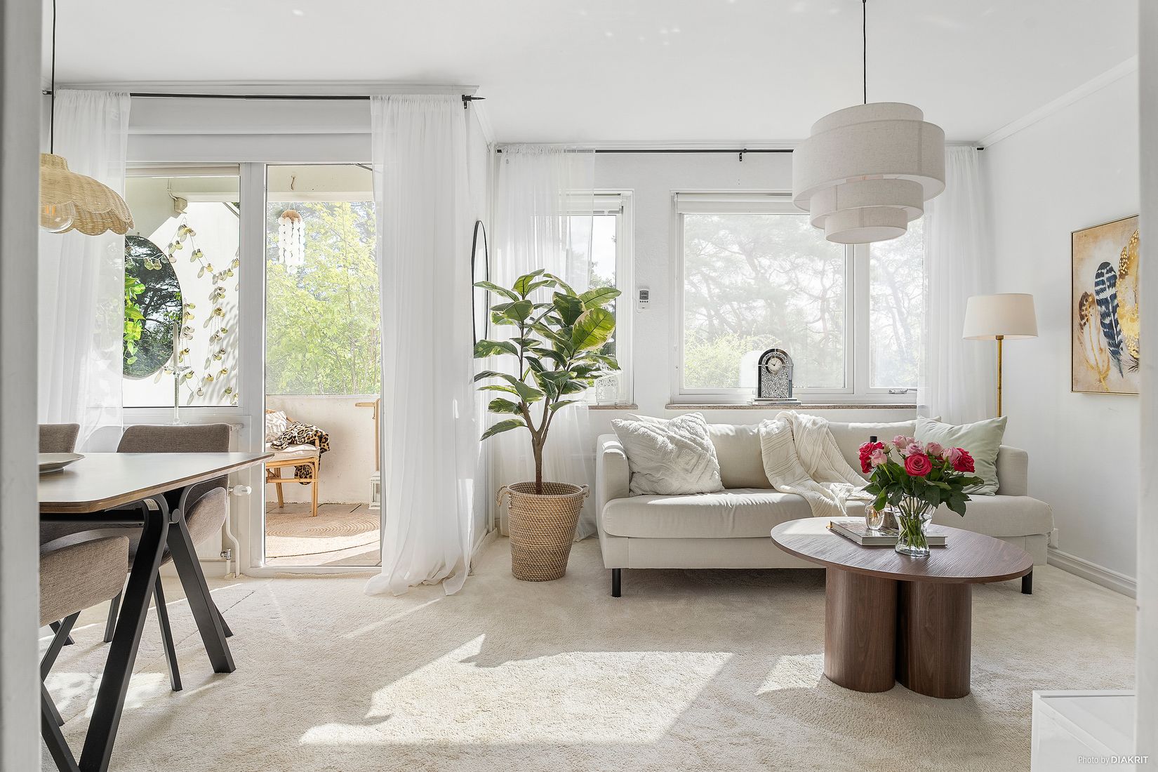 Bostaden är insynsskyddad och erbjuder både en balkong och en uteplats i österläge – perfekt för att avnjuta morgonkaffet i solens första strålar. Här kan du njuta av både lugn och grönska, mitt i vardagen.