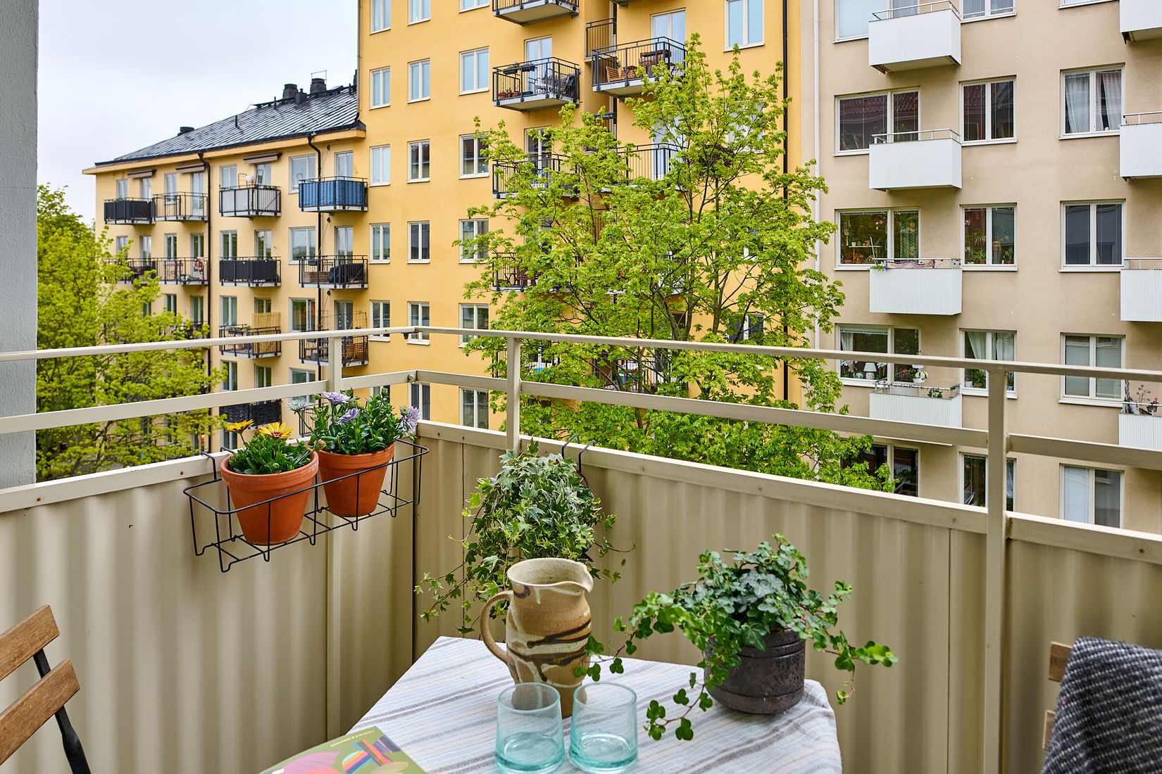 Lägenheten erbjuder ett rymligt vardagsrum i öppen planlösning mot köket, med plats för både soffgrupp och ett större matbord. Sovrum med en generös platsbyggd garderob med hyllor, dubbla hängnivåer och gott om förvaring. Garderoben är skräddarsydd i samma material som den platsbyggda sängstommen och nattduksbordet. Från sovrummet nås den lugnt belägna balkongen – en perfekt plats att koppla av på. Badrummet är fräscht och i fint skick efter tidigare stambyte.