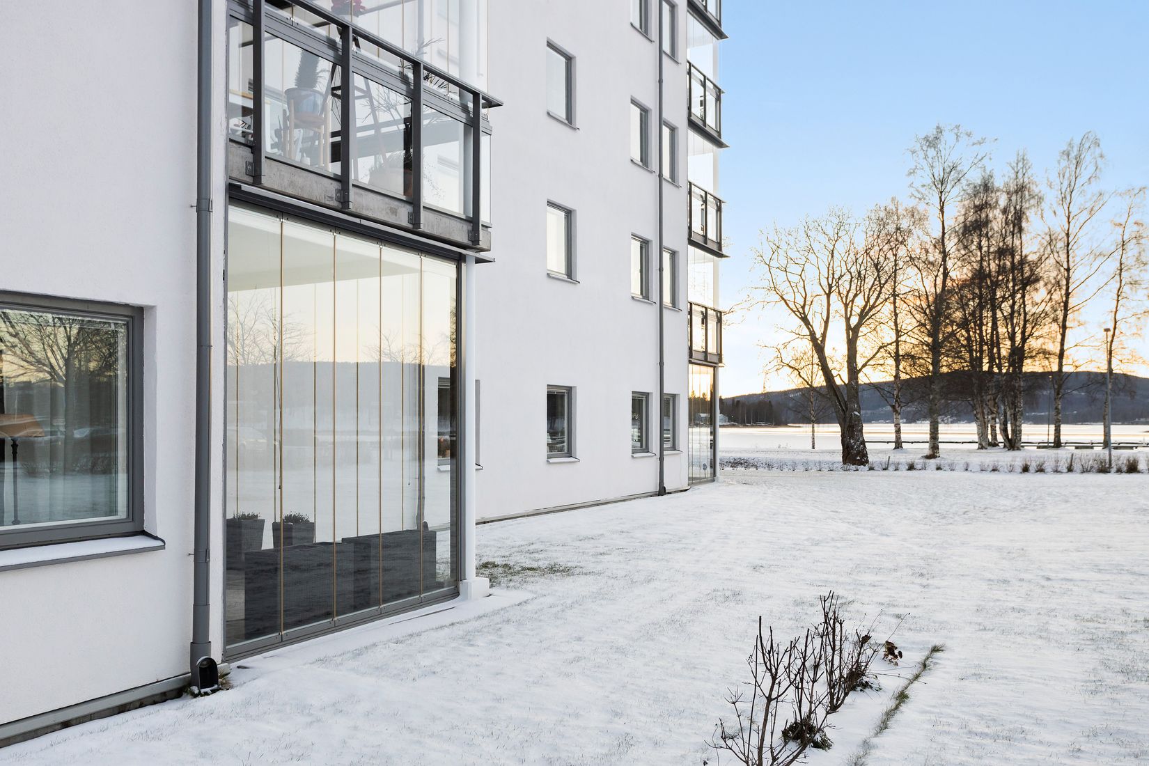 Lägenheten har ett rofyllt sovrum, ett helkaklat duschrum med skön golvvärme och ett luftigt vardagsrum i öppen planlösning med köket – perfekt för både vardagsliv och sociala stunder. Från vardagsrummet kliver du rakt ut på en generös, inglasad uteplats som blir ditt extra rum, framför allt under årets varmare månader. Här kan du njuta av solen från tidig eftermiddag till sen kväll och låta blicken vila över Södra sundet.