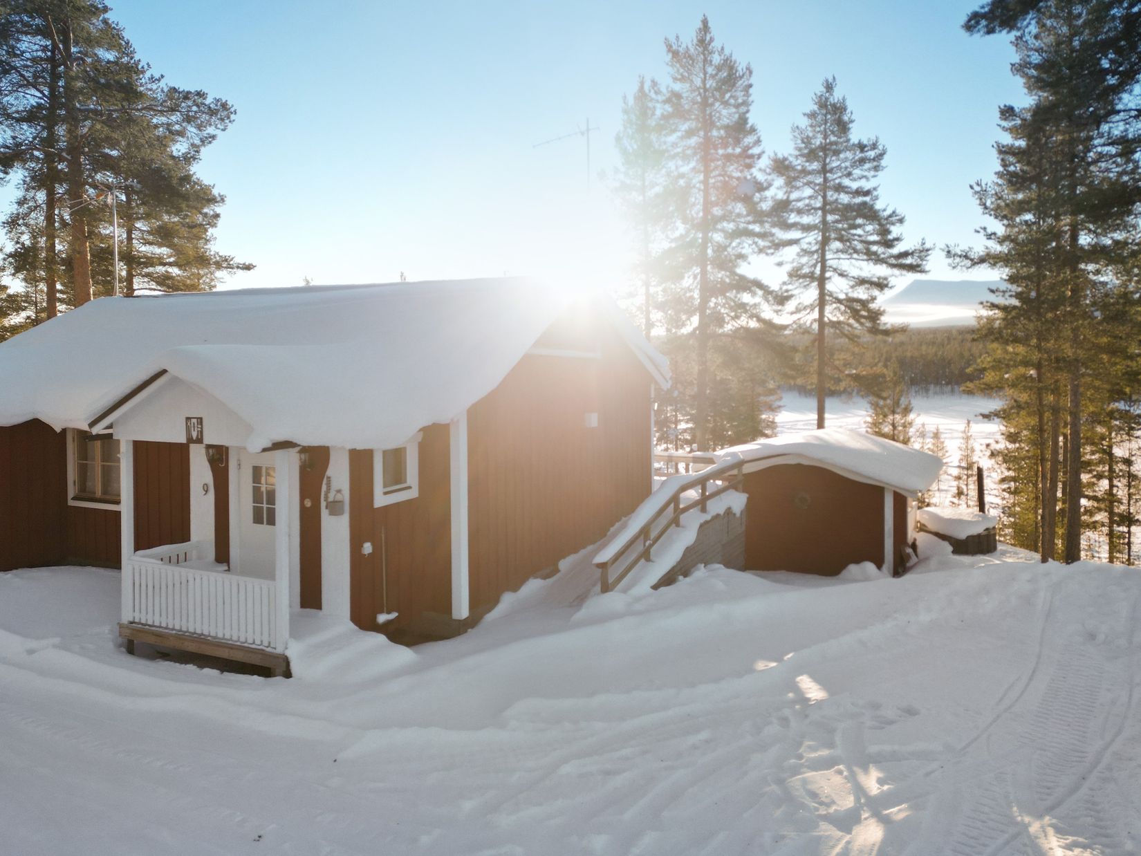 Längst in på en återvändsgata i fritidshusområdet Oltjärn ligger detta komprimerade fjällboende med enastående utsikt och fjällvärldens utbud inom knappa timmens bilfärd.