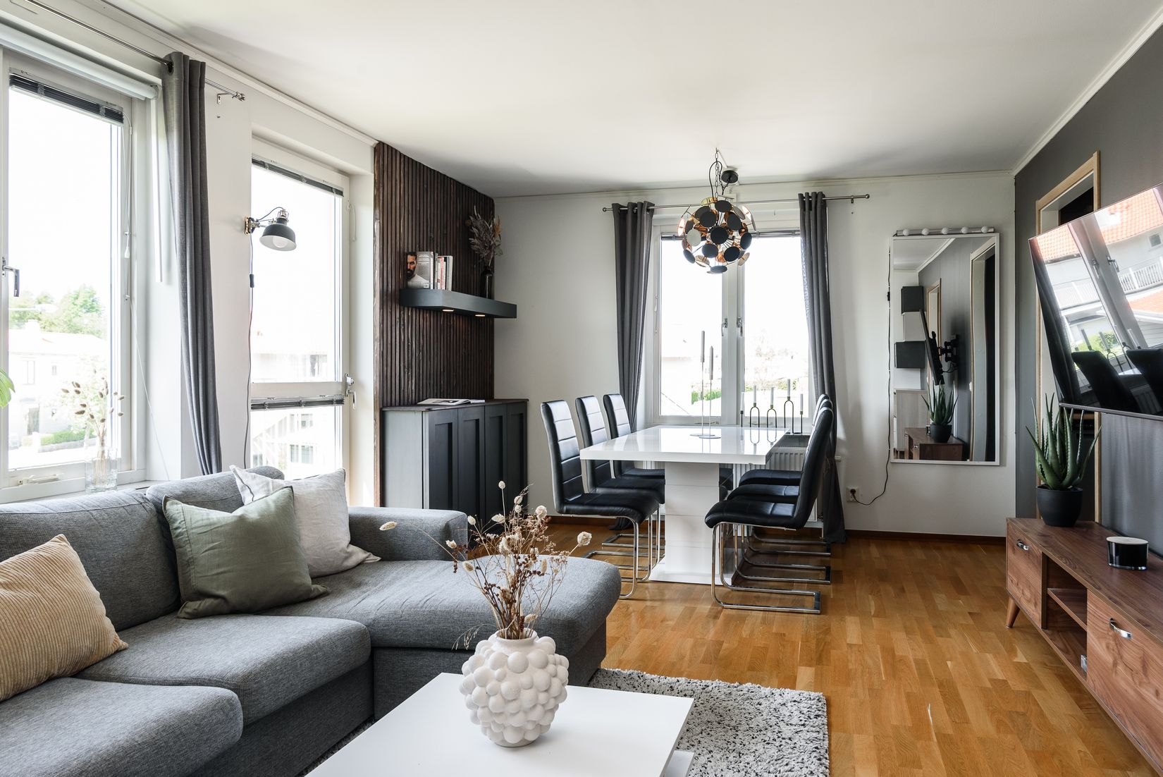 Planlösningen är genomtänkt och fördelas över ca 54 kvadrat. Här bjuds på ett härliga umgängesytor i ett stort och ljust vardagsrum med plats för både soffa, TV-möbel och matborsmöblemang. I anslutning till köket finns ett modernt och renoverat kök. Vidare finns här ett badrum utrusat med tvättmaskin och torktumlare samt ett rofyllt sovrum med fina förvaringsmöjligheter i en rejäl walk in closet.