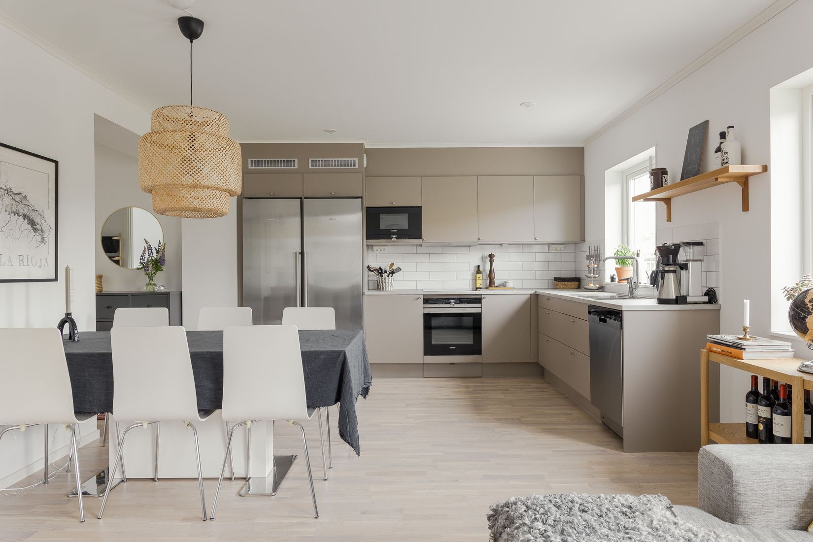 Lägenheten bjuder på två rymliga sovrum med generösa förvaringsmöjligheter – perfekt för familjen eller för er som vill ha extra plats för hemmakontor eller gäster. Det öppna köket och vardagsrummet flyter samman i en social och funktionell yta där ni kan umgås, laga mat och njuta av vardagen. Det helkaklade badrummet är smakfullt inrett och erbjuder praktiska tvättmöjligheter som underlättar vardagen. Utanför entrén finns en mysig loftgång som enkelt kan möbleras med utemöbler – en perfekt plats för morgonkaffet eller kvällshänget.