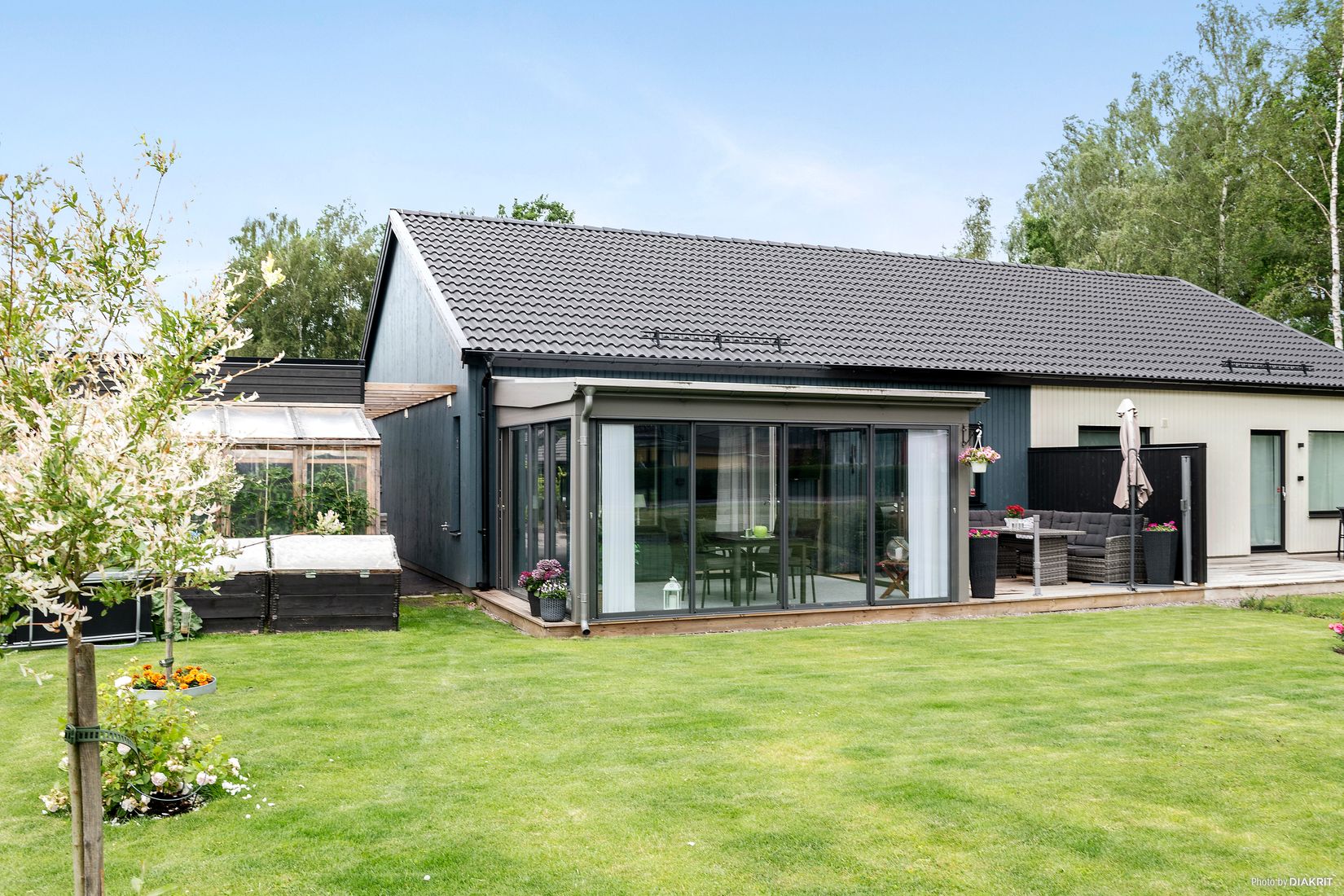 Lägenheten har dessutom en härlig trädgård med trädäck samt inglasat uterum.