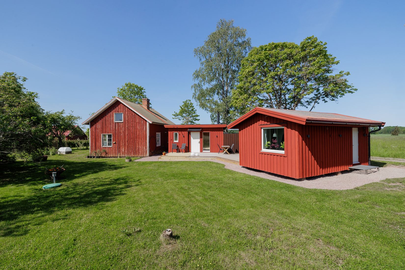 Samtidigt kan du redan nu bo året runt i det smakfullt inredda attefallshuset - ett riktigt guldkorn som kombinerar funktion och estetik. Perfekt som tillfälligt boende medan du sätter tänderna i huvudbyggnaden, eller som permanent bostad för den som vill leva enkelt och naturnära. Allt i attefallshuset är nybyggt och varje detalj är genomtänkt, och huset andas lugn och kvalitet. Attefallshuset är snyggt sammanlänkat via ett trädäck med ytterligare en byggnad där extra sovrum/kontor finns och en bastu med plats för upp till 8 personer.