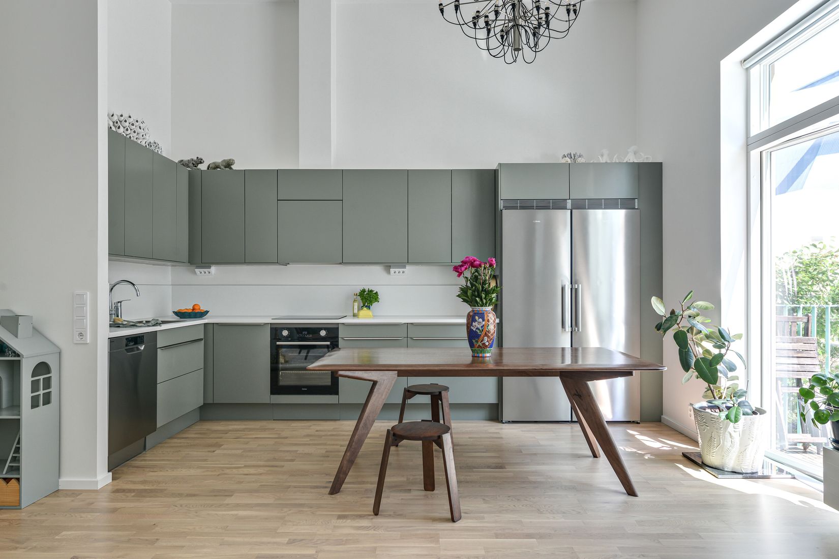 Här erbjuds en stilren öppen planlösning mellan kök och vardagsrum, vilket skapar ett naturligt flöde genom bostaden. Köket från Marbodal kombinerar smakfull design med funktion och är perfekt för både vardagsliv och sociala tillställningar. Från köksdelen nås den trevliga balkongen – en idealisk plats för morgonkaffet eller avslappning i solen. För mer utemiljö nås föreningens innergård på kort avstånd från bostaden.