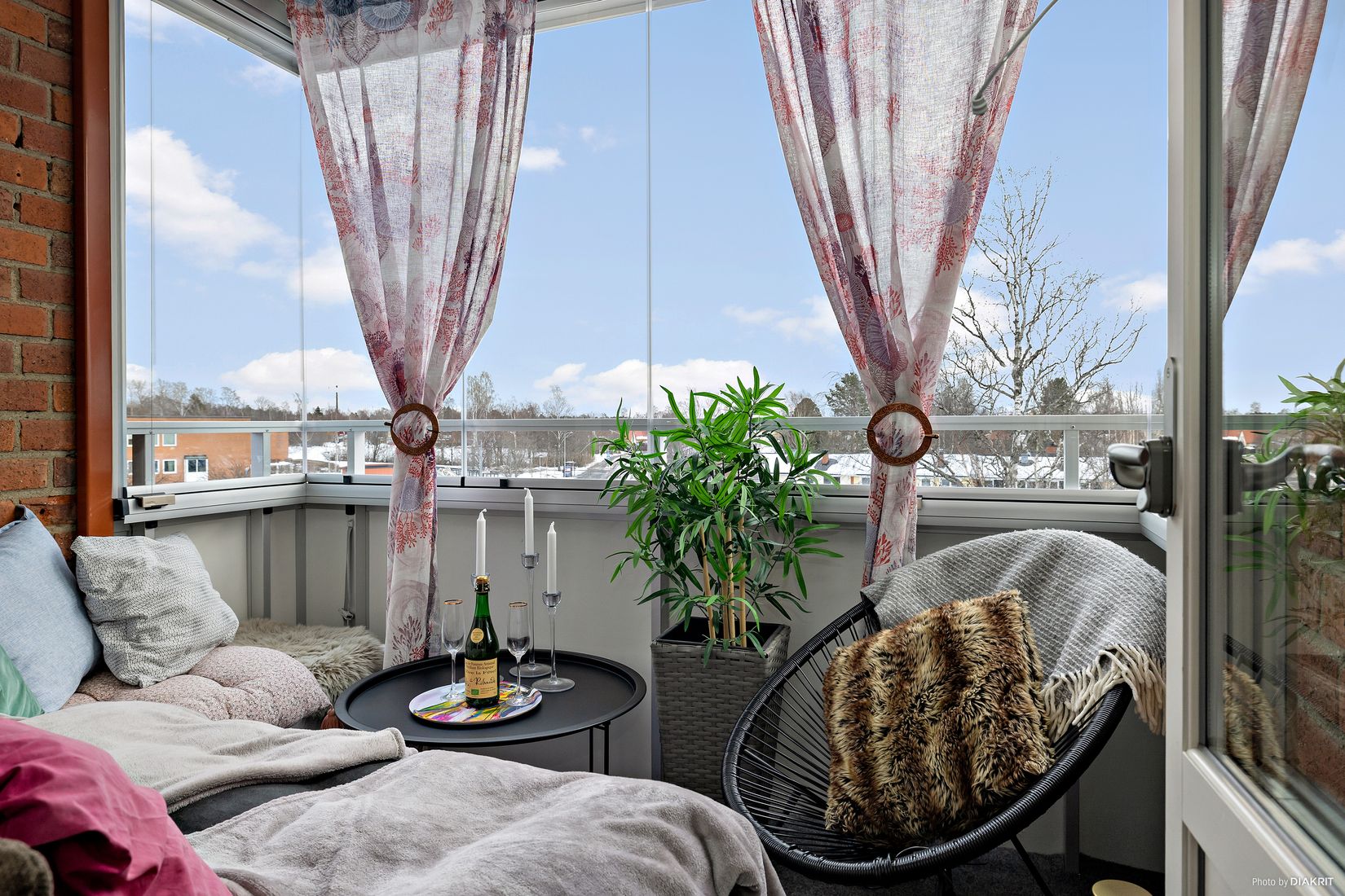 Välkommen till denna smakfullt renoverade trerummare som kombinerar stil och funktionalitet för hela familjen. Den öppna planlösningen mellan vardagsrum och kök skapar en inbjudande atmosfär, idealisk för sociala sammankomster. Vardagsrummet har en dekorativ skiffervägg som ger bostaden en modern och unik känsla. Köket är utrustat med rostfria vitvaror och en praktisk köksö som underlättar både matlagning och umgänge. Den rymliga inglasade balkongen fungerar som en förlängning av bostaden och är perfekt för att njuta av både soliga och regniga dagar. Bostaden har två sovrum samt en rymlig walk-in-closet, vilket erbjuder gott om förvaringsutrymme. Det moderna badrummet är utrustat med kaklade väggar, klinkergolv med golvvärme och en tvättmaskin för extra bekvämlighet.