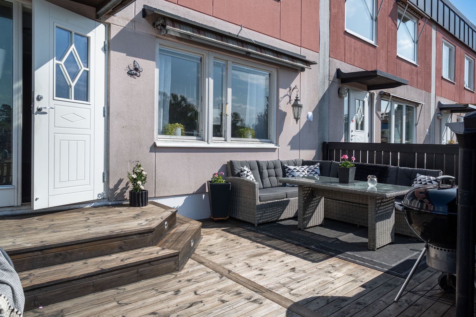 Välkommen till detta trivsamma och barnvänliga radhus med bra läge! Delvis renoverat kök och helrenoverat och ombyggt badrum, underbara sällskapsytor med stort härligt allrum och utgång till stor altan mot lummig baksida.