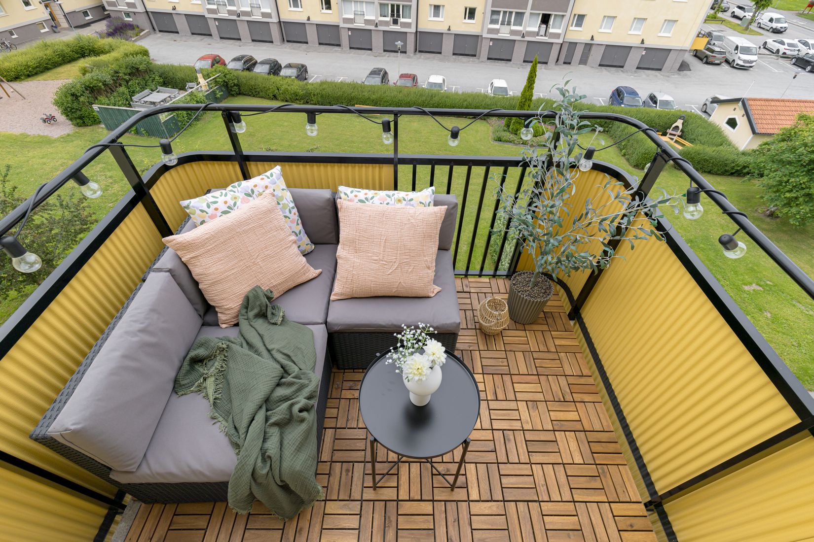 Lägenheten håller en genomgående hög standard med moderna ytskikt och en hemtrevlig atmosfär. Det stilrena köket är renoverat och utrustat med goda arbetsytor, gott om förvaring, diskmaskin samt matplats för fyra personer intill fönstret med utsikt över den grönskande innergården. Vardagsrummet är luftigt och inbjudande med plats för både soffgrupp och matsalsmöbel. Sovrummet är rymligt och rofyllt, med plats för dubbelsäng och förvaringsmöbler. Härifrån nås även den mysiga balkongen som vetter mot föreningens lugna innergård och bjuder på härlig morgonsol – perfekt för frukost i det fria.