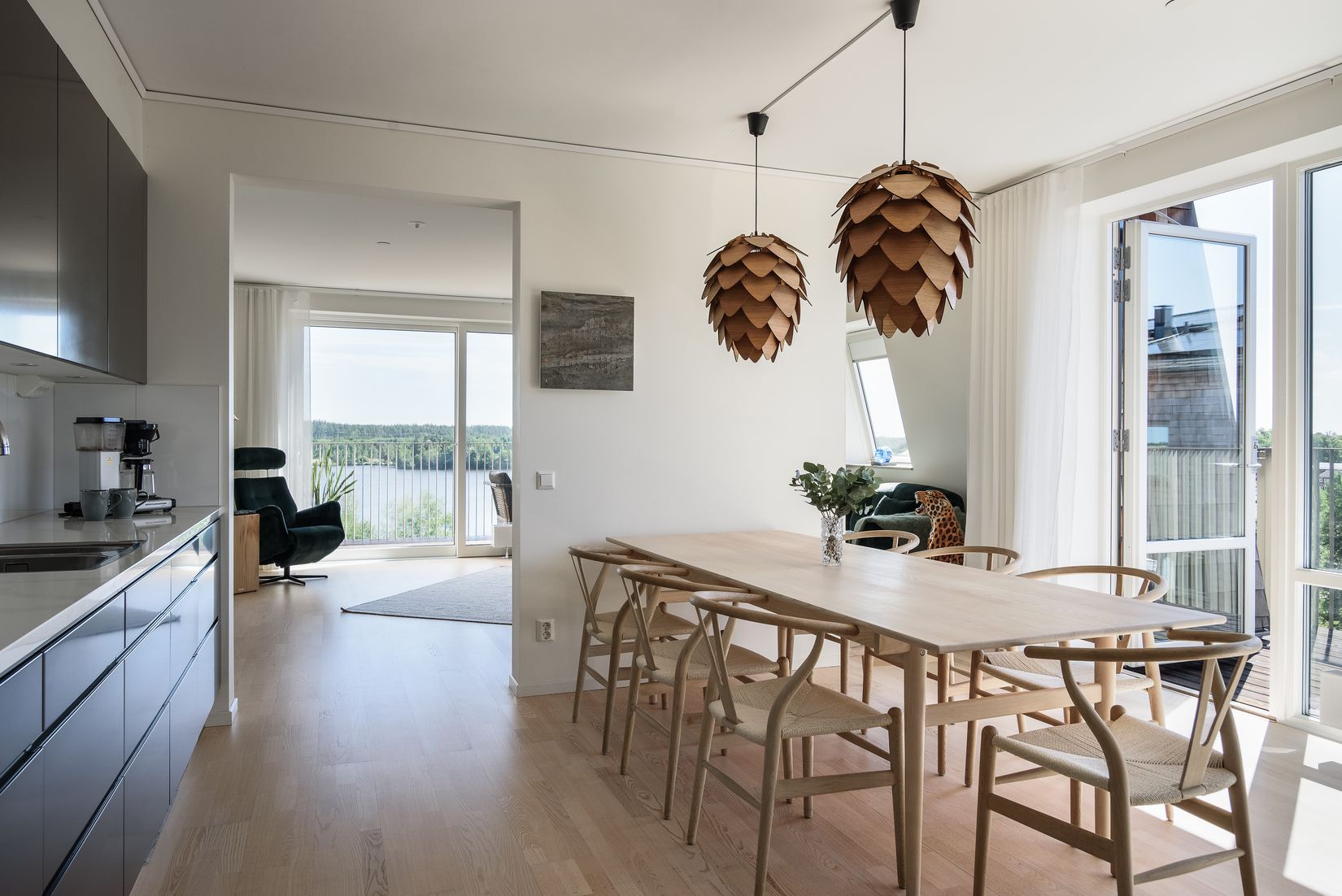 Bostaden fördelas över ca 122 kvm och erbjuder en genomgående hög standard och en påkostad interiör. Social planlösning där fokus har lagts på kök, matplats och vardagsrum som förenas på ett tilltalande sätt och skapar underbara ytor att umgås och trivas på. Påkostat kök från Ballingslöv med rostfria vitvaror från Bosch. Enastående sjöutsikt från vardagsrummet bidrar med boendekvalité. Vidare finns här två helkaklade och lyxiga badrum, i ett av badrummen finns tvättmaskin och torktumlare. Här finns även tre trivsamma och rymliga sovrum. Från vardagsrummet nås en underbar balkong med sjöutsikt och slående utsikt. Ytterligare en trevlig balkong nås från köket, även denna balkongen har sjöutsikt. Till lägenheten hör ett förråd.